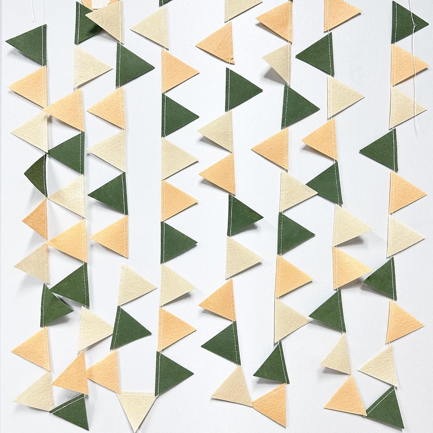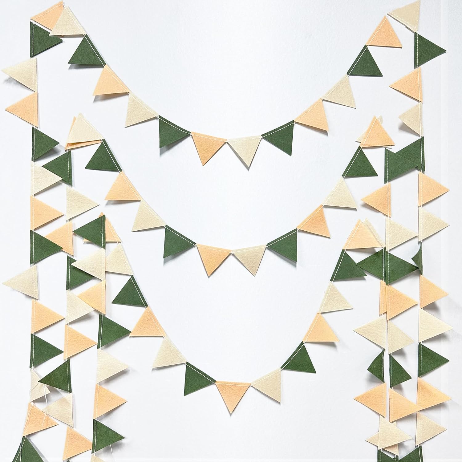 - Easy Assembly - Easy hanging and reusable.Perfect fit for sage green party decor.unroll and unwrap garland carefully. due to delicate nature of thread,may tangle.This sage green mini triangle pennant makes an attractive backdrop for videos and photos.
