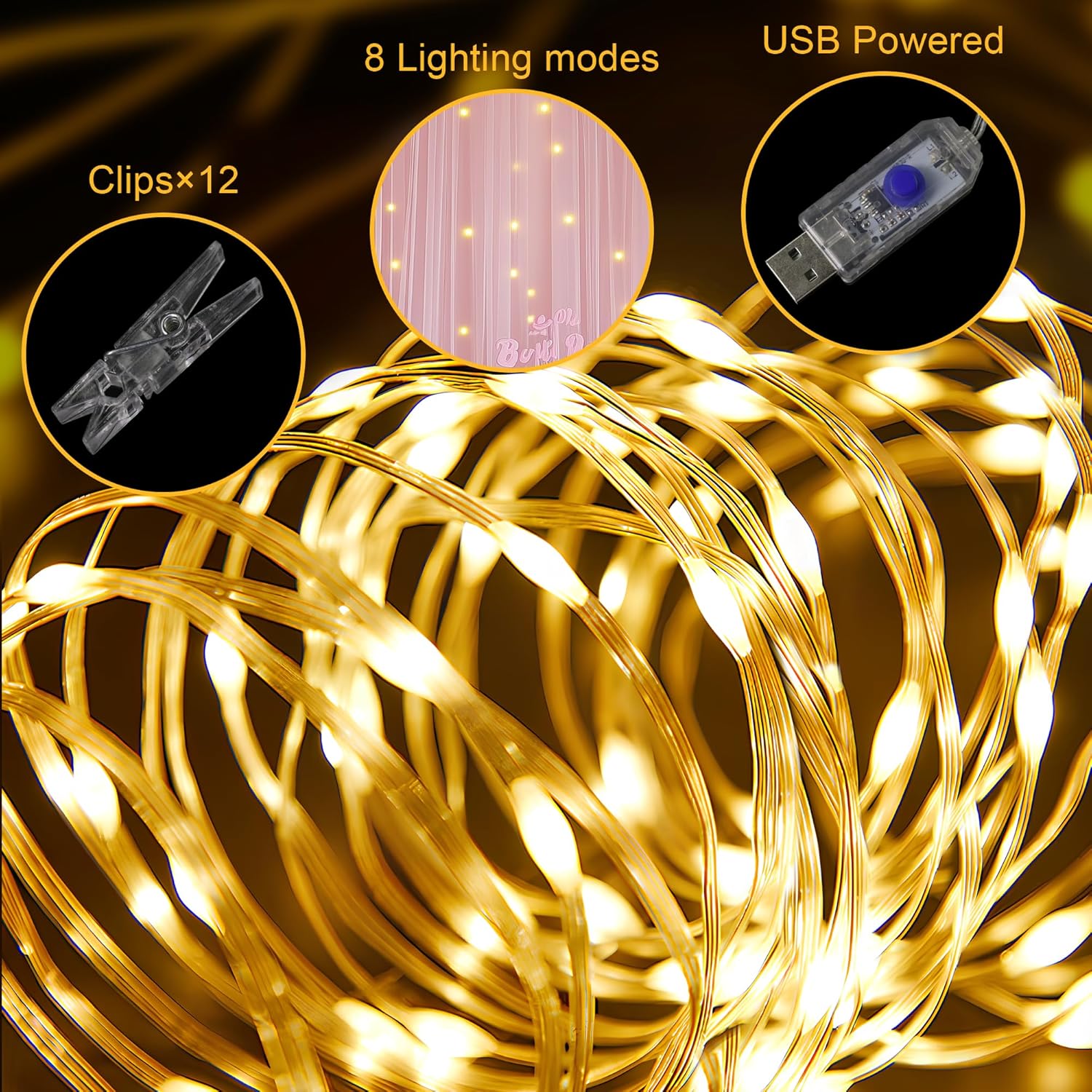 - Easy to Set: light curtain backdrop with rod pockets at the top for easy hanging on backdrop stand, attach the string lights to the sheer backdrop curtains with plastic clips, then untie the 10 light strings and plug the curtains lights into a portable external batteries or an outlet with a USB port. Note: Put away from sharp items to avoid causing the curtain with lights damaged.