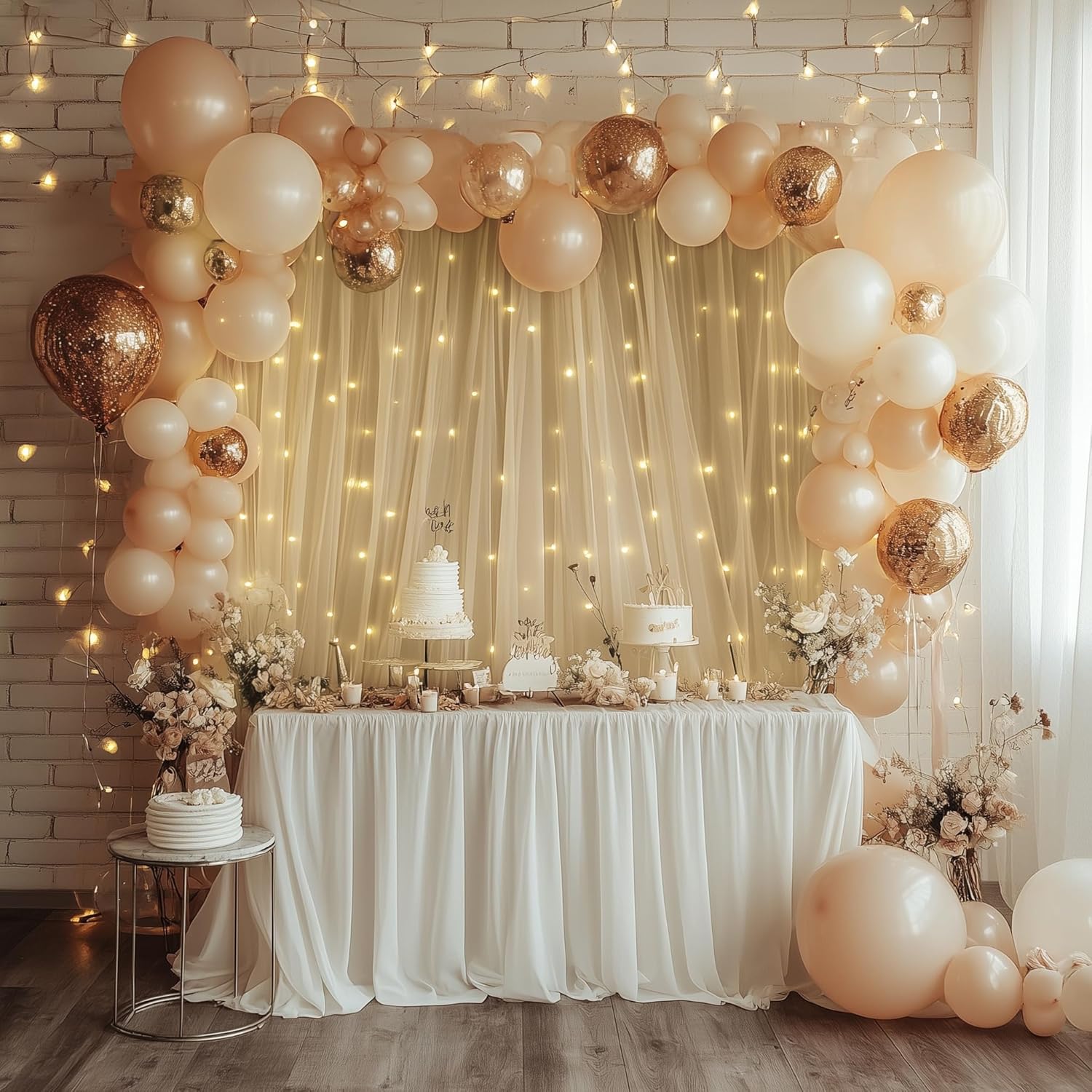 - Package Includes: The package includes 2 panels soft champagne curtain with lights, each panel tulle backdrop curtain size is 5FT width and 8FT height, a set of 10ft warm white string light (USB Powered) and 12pcs Transparent clips.