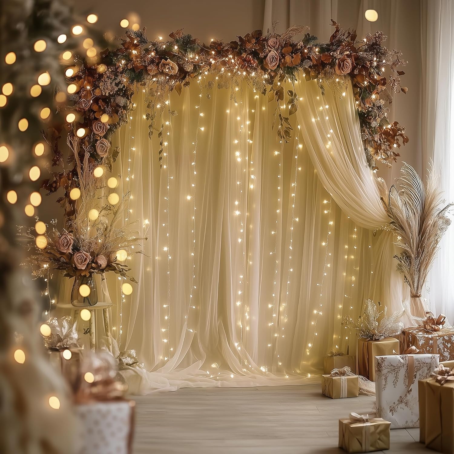 - Widely Used: The sheer curtains with lights are excellent background decorative accents for edding ceremony, receptions, bridal showers, baby showers, birthday party, photography backdrop, stage photography, room. Tulle backdrops are suitable for all occasions, creating a cozy atmosphere and leaving beautiful moments for the event.