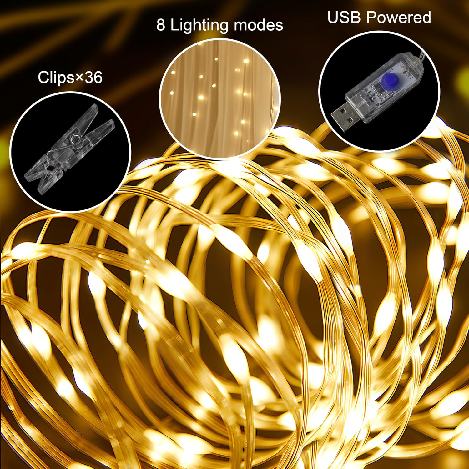 - Easy to Install: The sheer backdrop curtains is designed with a 6.7-inch rod pocket that fits a variety of curtain rod sizes for easy draping . When installing the light strings, attach the strings to the tulle curtains with plastic clips, then untie the 10 strings to prevent tangling. Finally, connect the USB to the power source.