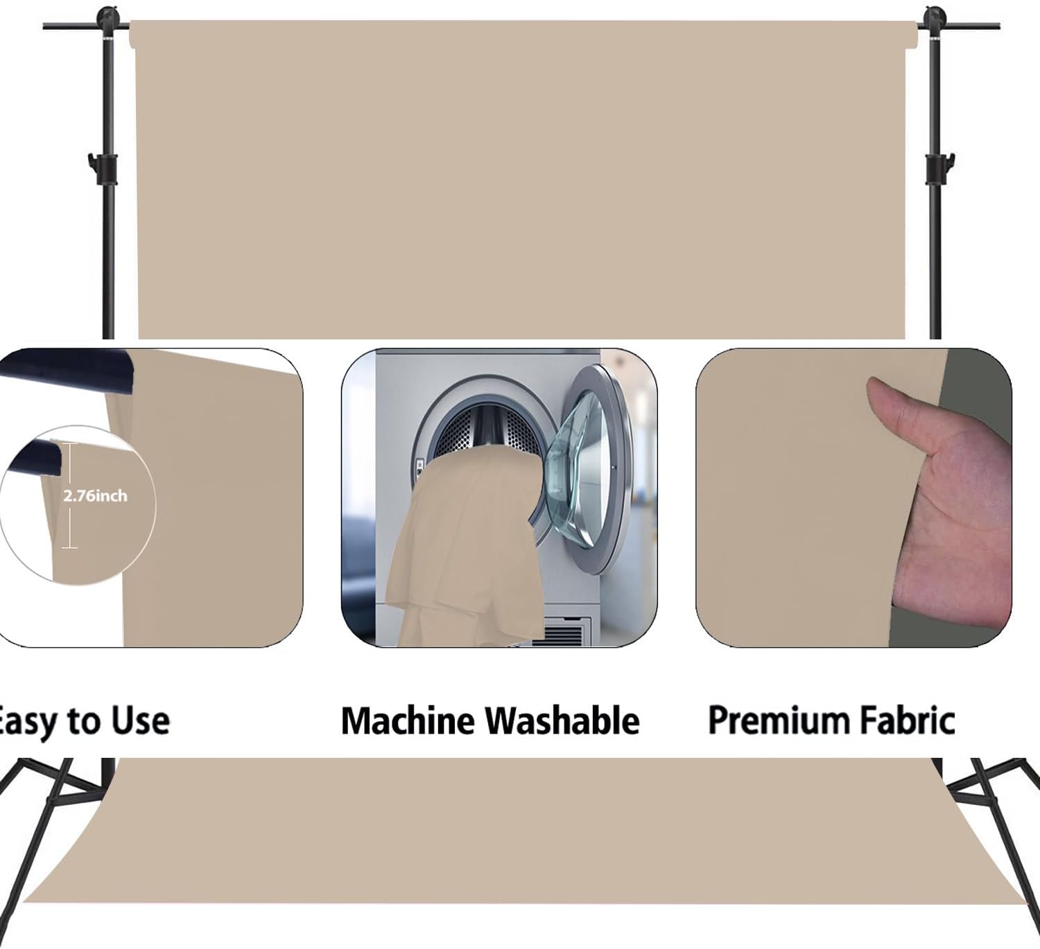 - Easy to clean: The beige backdrop material is durable, can be washed by hand and can be washed in the washing machine, please lay flat or hang to dry after cleaning. If necessary, iron the surface with a steam iron.