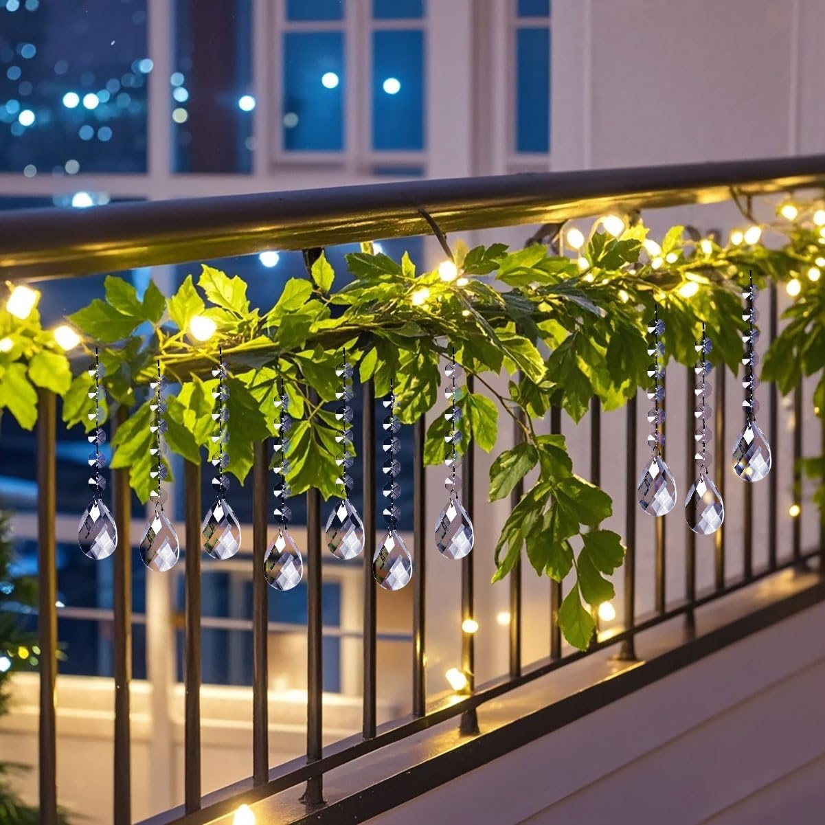 - Elegant Hanging Ornaments: Designed with teardrop acrylic prisms, combined with clear plastic icicle drops adorned with crystal beads, creating a festive and romantic ambiance. Ideal for decorating Christmas trees, centerpieces, chandeliers, windows, and various corners of your home.