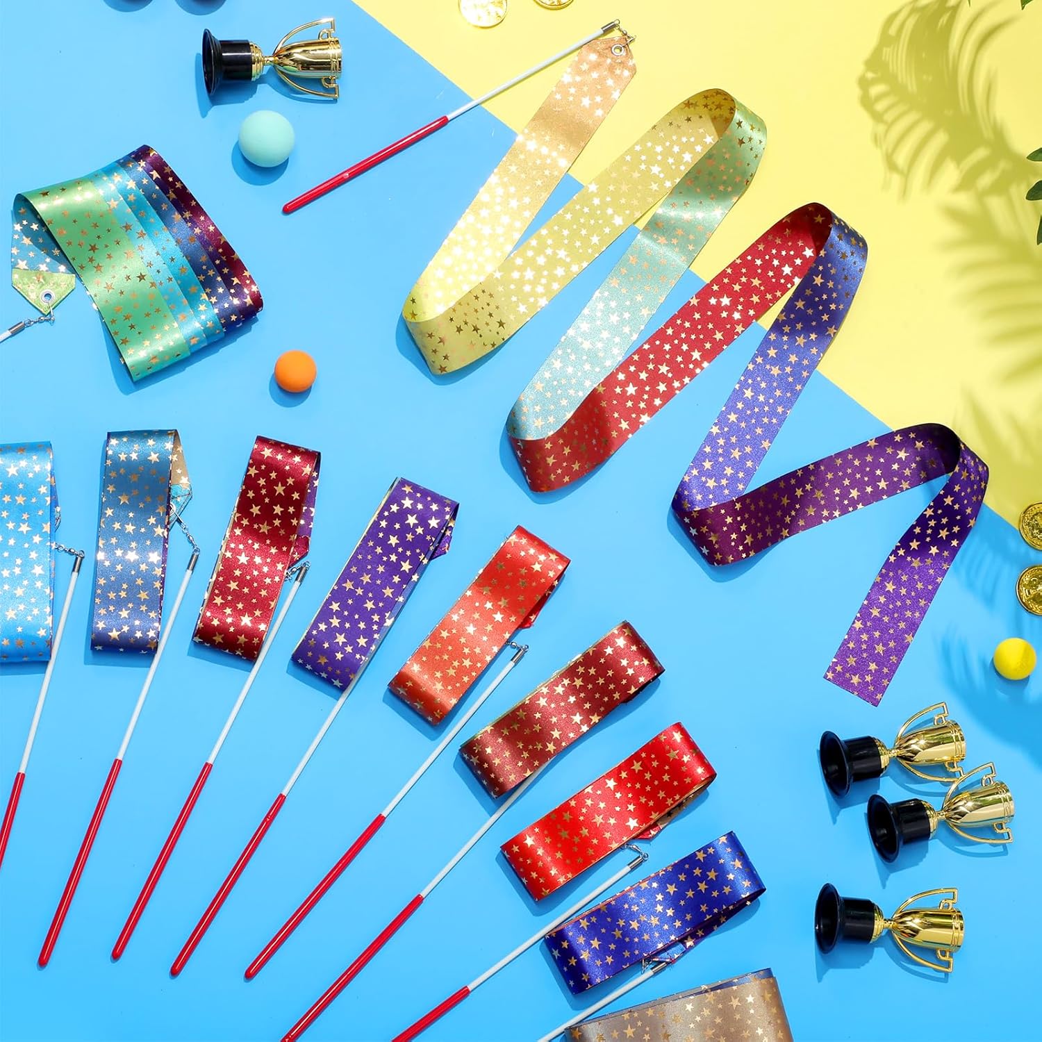 - Suitable Size: each gymnastics ribbon is about 2 meters/ 78.74 inches in length, 4.5 cm/ 1.77 inches in width, the non slip stick is about 29 cm/ 11.4 inches long, very suitable for gymnastics dance performance, they can swirl the gymnastics ribbon on the stage to show their charm
