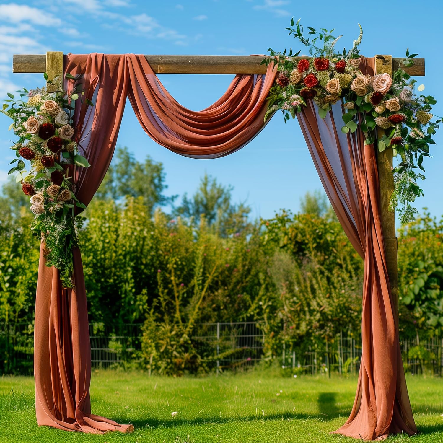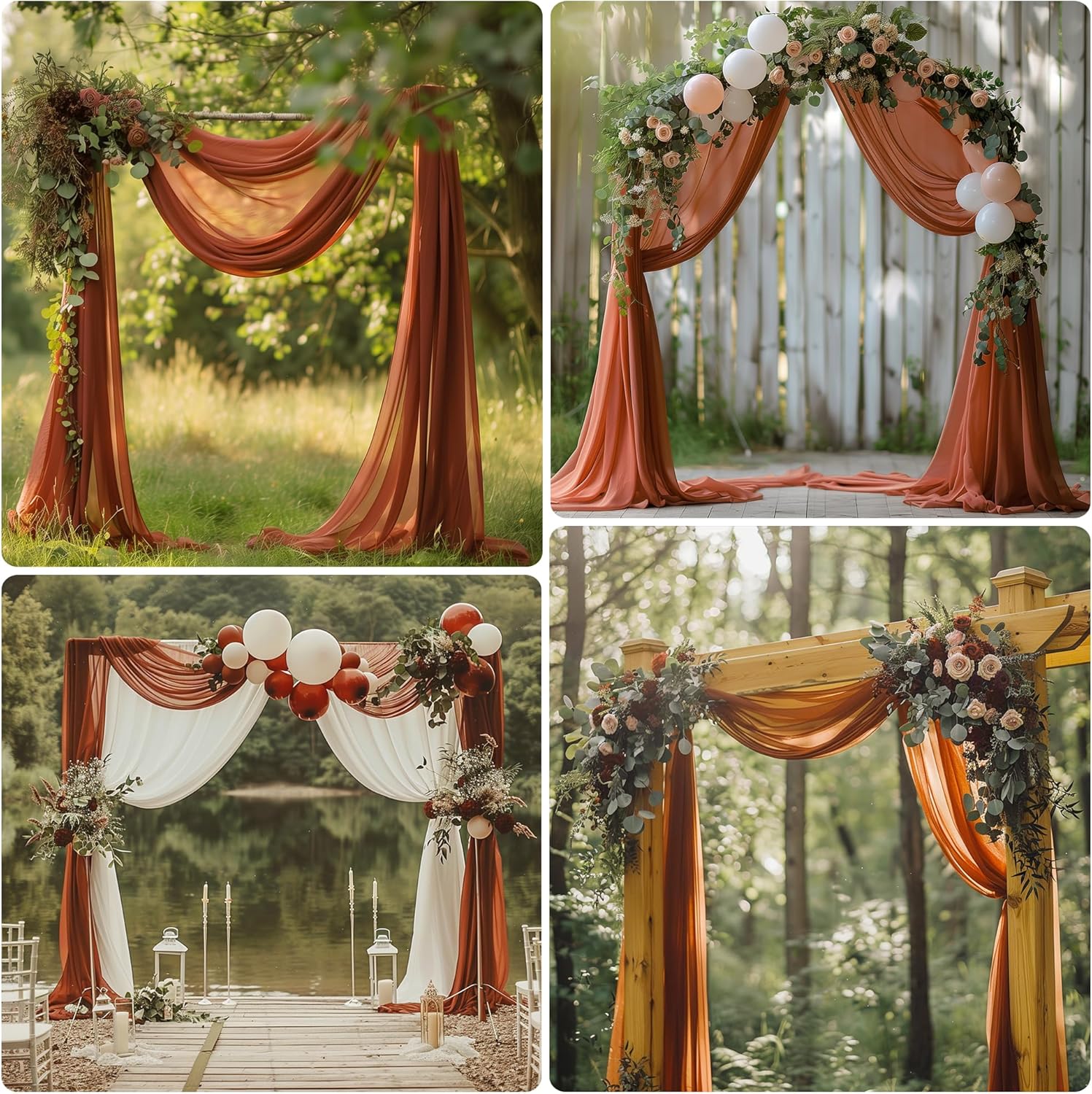 Wedding Arch Draping Fabric 1 Panel 28.7" x 20FT Terracotta Sheer Chiffon Backdrop Drapes for Wedding Ceremony Birthday Party Bridal Shower Outdoor Decoration