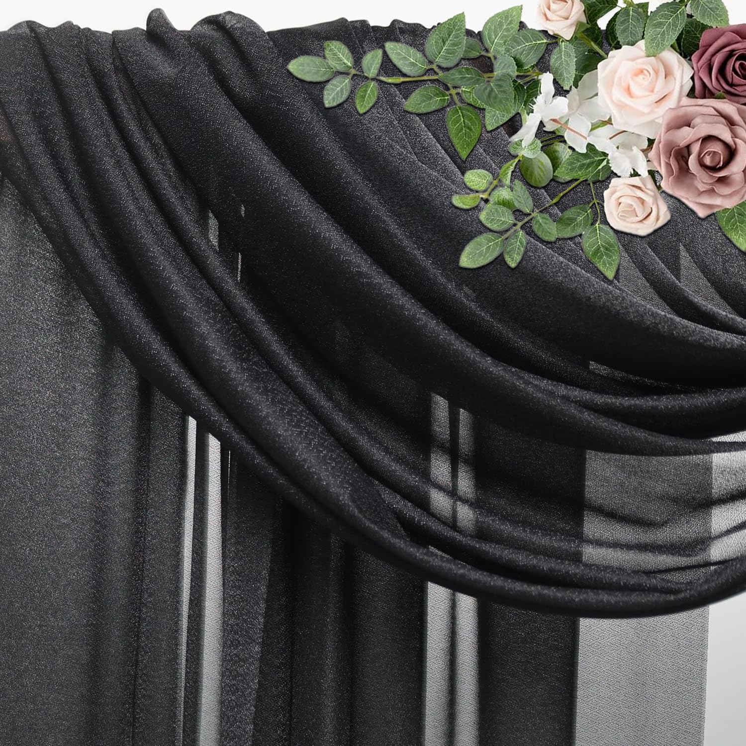 Wedding Arch Draping Fabric 3 Panels 28.7" x 20FT Black Sheer Chiffon Backdrop Drapes for Wedding Ceremony Birthday Party Bridal Shower Outdoor Decoration