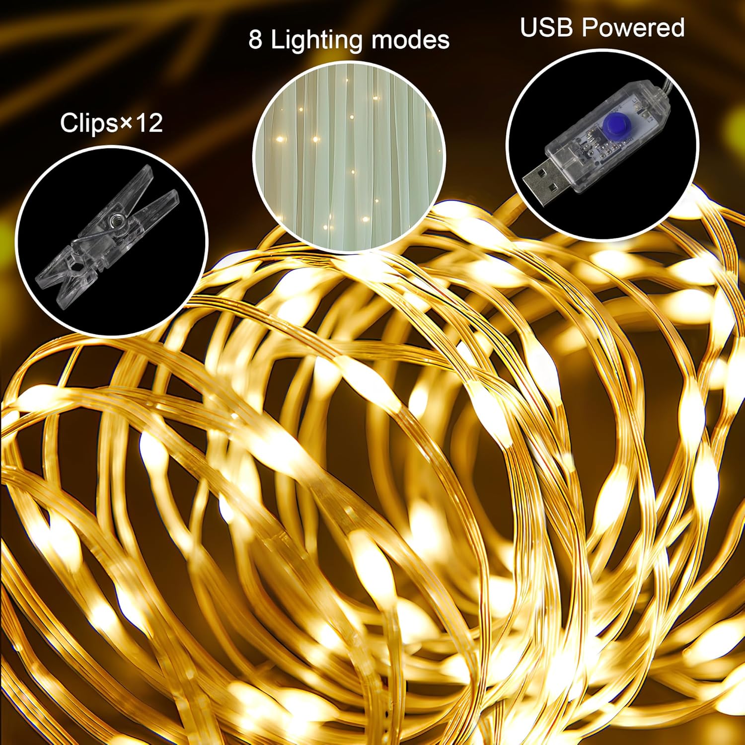 - Easy to Install: The sheer backdrop curtains is designed with a 6.7-inch rod pocket that fits a variety of curtain rod sizes for easy draping . When installing the light strings, attach the strings to the tulle curtains with plastic clips, then untie the 10 strings to prevent tangling. Finally, connect the USB to the power source.