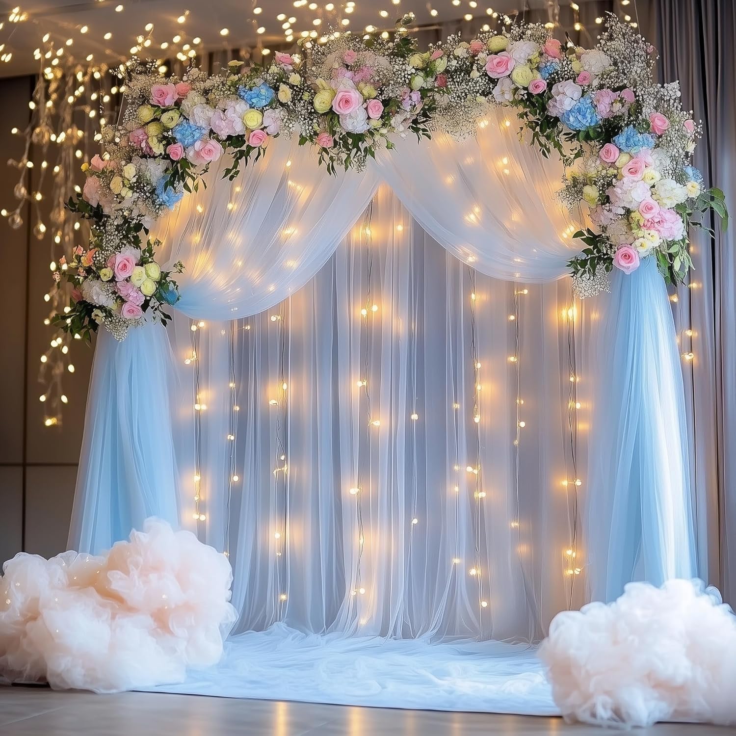 - Widely Used: The sheer curtains with lights are excellent background decorative accents for edding ceremony, receptions, bridal showers, baby showers, birthday party, photography backdrop, stage photography, room. Tulle backdrops are suitable for all occasions, creating a cozy atmosphere and leaving beautiful moments for the event.