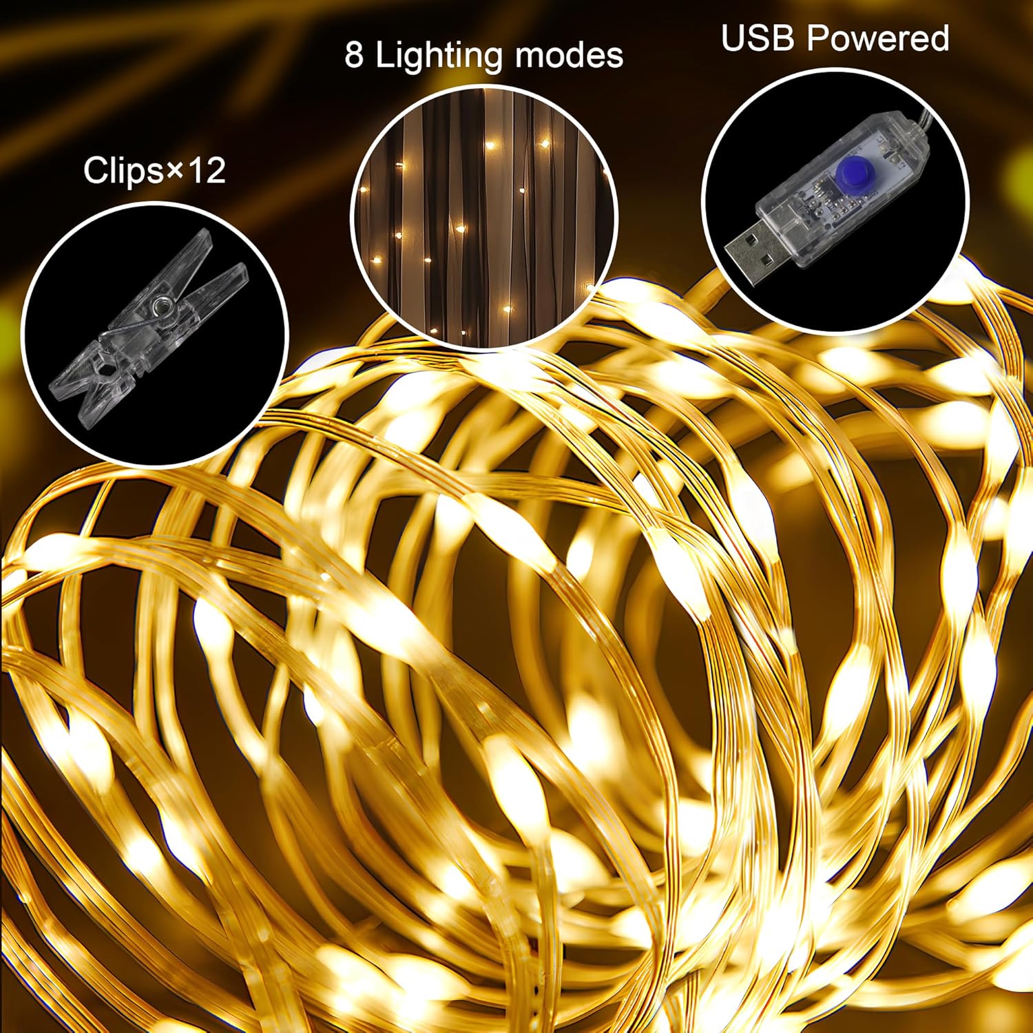 - Easy to Install: The sheer backdrop curtains is designed with a 6.7-inch rod pocket that fits a variety of curtain rod sizes for easy draping . When installing the light strings, attach the strings to the tulle curtains with plastic clips, then untie the 10 strings to prevent tangling. Finally, connect the USB to the power source.