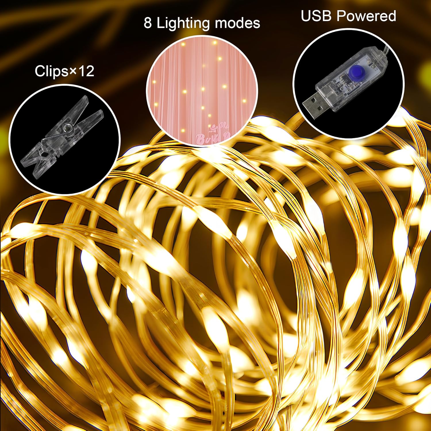 - Easy to Install: The sheer backdrop curtains is designed with a 6.7-inch rod pocket that fits a variety of curtain rod sizes for easy draping . When installing the light strings, attach the strings to the tulle curtains with plastic clips, then untie the 10 strings to prevent tangling. Finally, connect the USB to the power source.