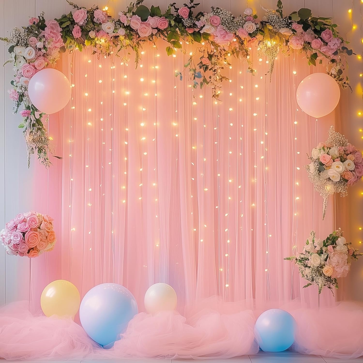 - Widely Used: The sheer curtains with lights are excellent background decorative accents for edding ceremony, receptions, bridal showers, baby showers, birthday party, photography backdrop, stage photography, room. Tulle backdrops are suitable for all occasions, creating a cozy atmosphere and leaving beautiful moments for the event.