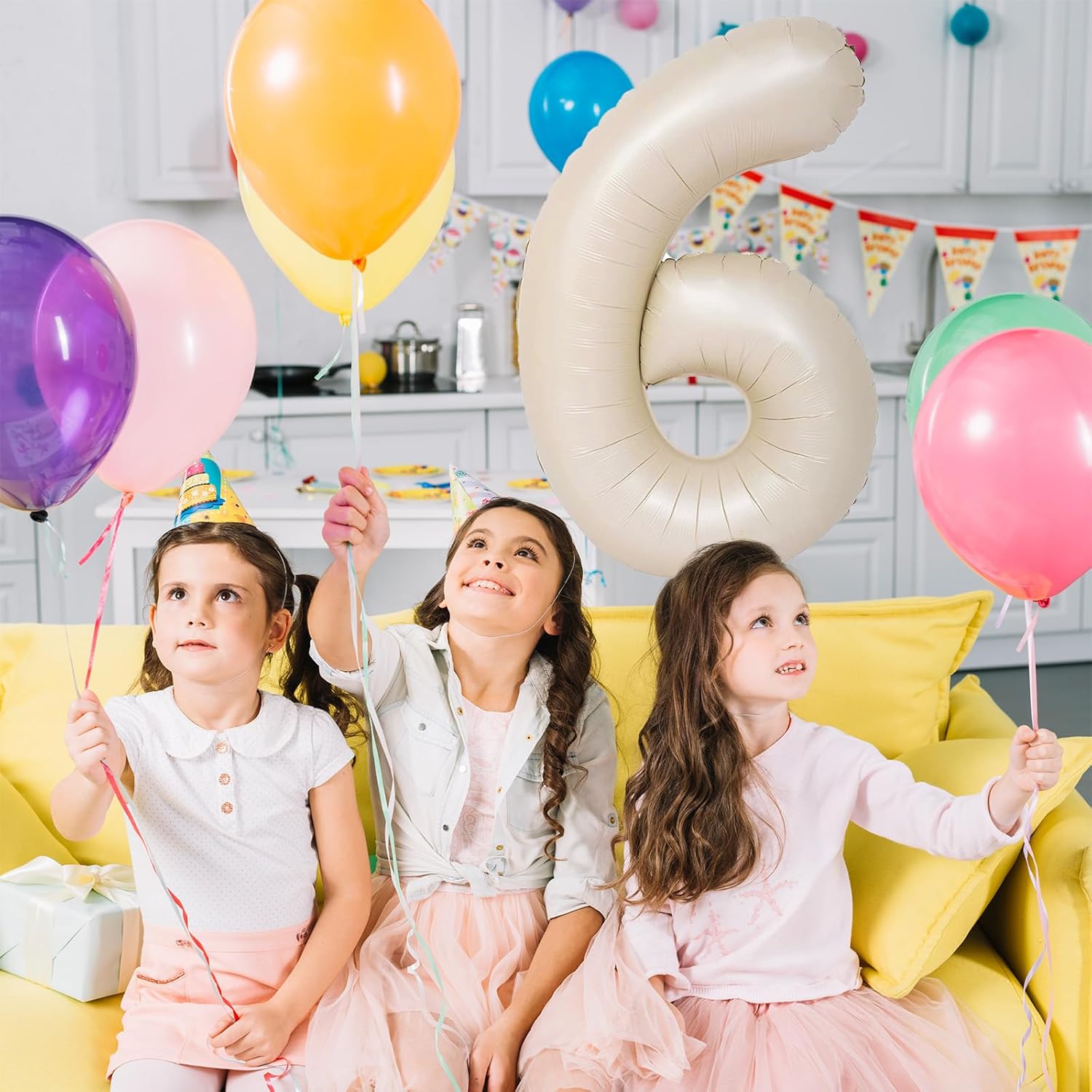 - Cream White Number 6 Balloon 40 Inch: Includes 1pc beige "6" balloon and a straw for easy inflation and deflation. This elegant, neutral digital helium balloon is perfect for birthdays, anniversaries, or special occasions like a 6th, 16th, 26th, or 60th celebration. Mix and match with other numbers and letters to create a personalized, memorable party setup!