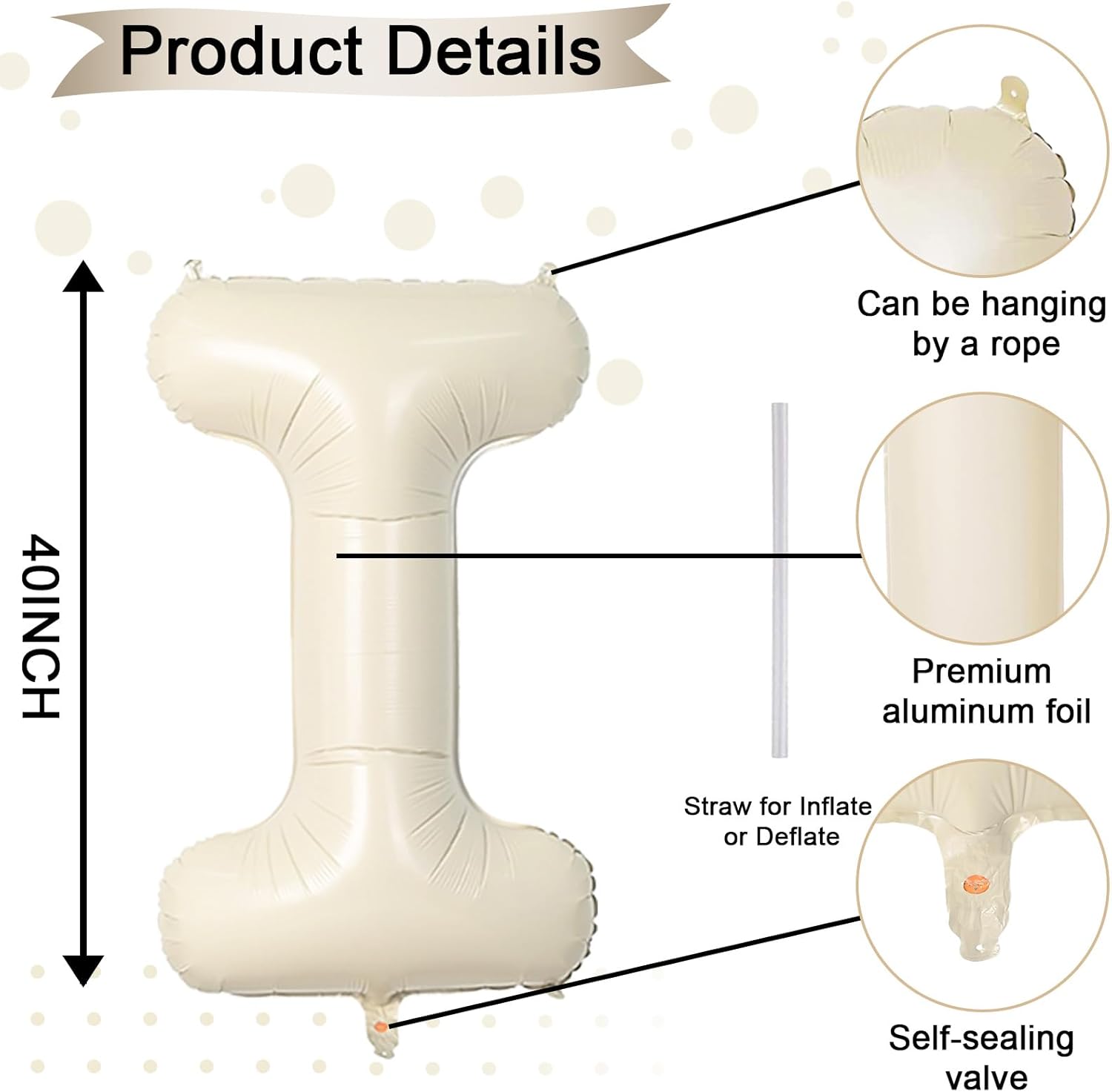 - Cream White Letter I Balloon 40 Inch: Includes 1pc giant beige "I" letter balloon and 1 straw for easy inflation and deflation. Our elegant big beige balloons are perfect for personalized parties. With 26 letters (A-Z) and numbers (1-9) available, you can mix and match to fit your theme.