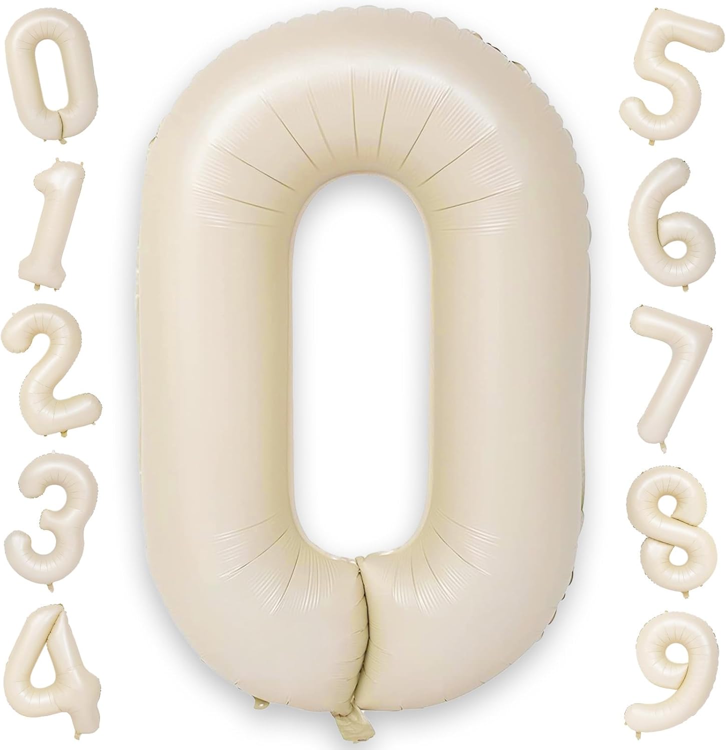 - Cream White Number 0 Balloon 40 Inch: Includes 1pc beige "0" balloon and a straw for easy inflation and deflation. This elegant, neutral digital helium balloon is perfect for birthdays, anniversaries, or special occasions like a 10th, 20th, 30th, or milestone celebration. Mix and match with other numbers and letters to create a personalized, memorable party setup!