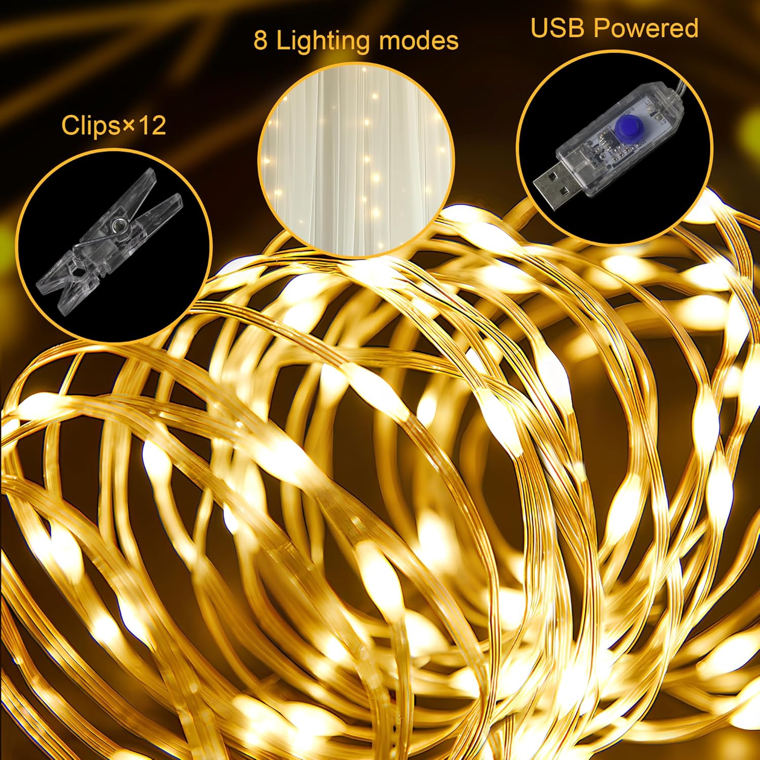 - Easy to Set: light curtain backdrop with rod pockets at the top for easy hanging on backdrop stand, attach the string lights to the sheer backdrop curtains with plastic clips, then untie the 10 light strings and plug the curtains lights into a portable external batteries or an outlet with a USB port. Note: Put away from sharp items to avoid causing the curtain with lights damaged.