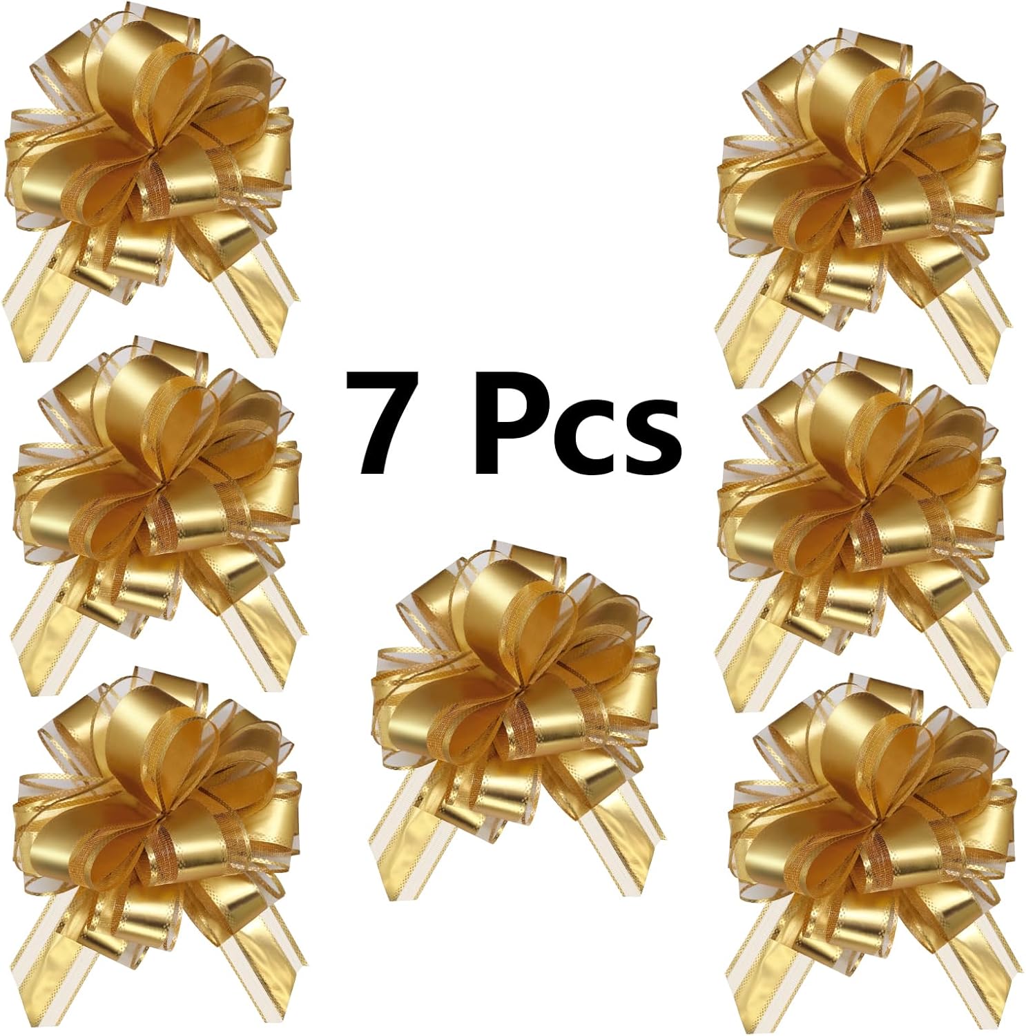 7 Pieces Large Pull Bows, 6 inche, Big Bow for Gift Wrapping, Christmas Party Birthday Gift, Wedding Baskets,Valentine's Day Decorations, Flower Decoration (Gold)