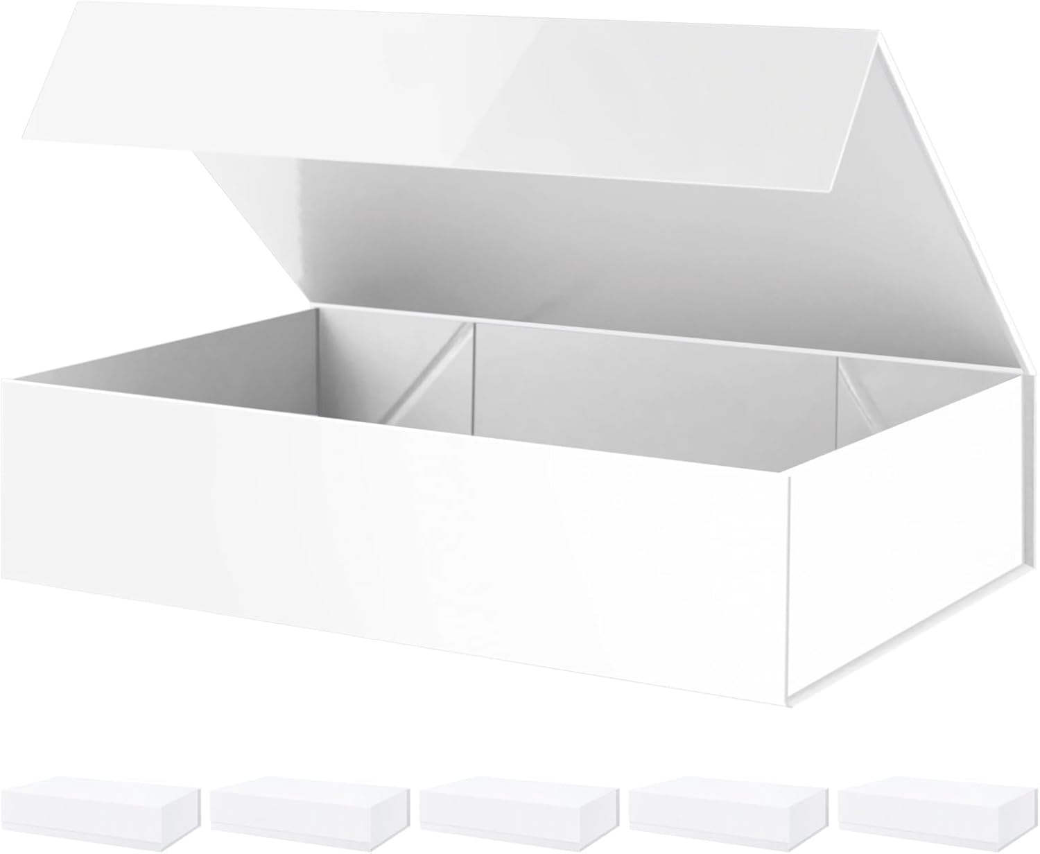 PACKHOME 6 Extra Large Gift Boxes 17.5x11.3x4.3 Inches, Sturdy Shirt Boxes with Magnetic Lids for Clothes and Large Gifts (Glossy White)