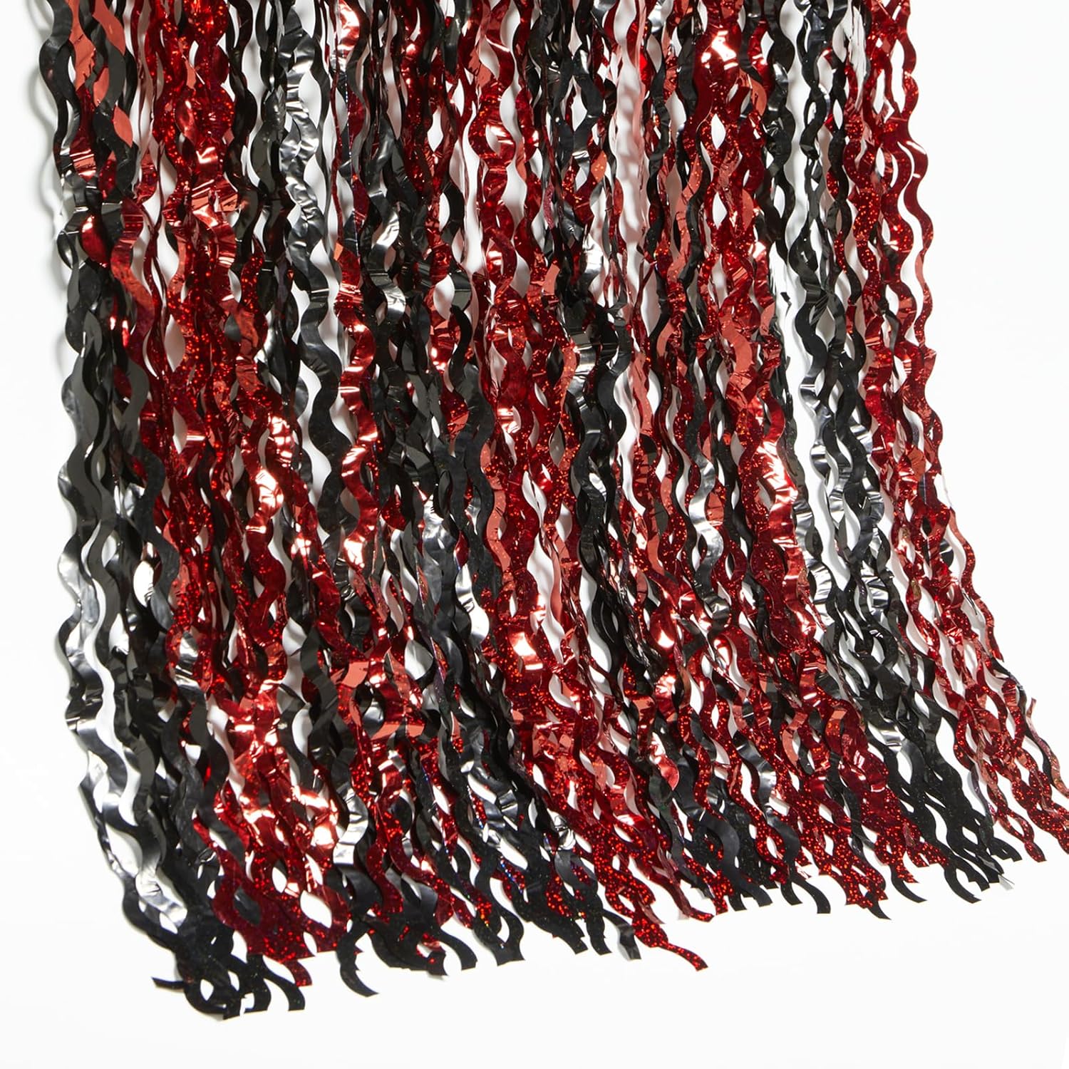 - Wavy Shape and Quality Material: The shiny black red metallic tinsel backdrop is made of aluminum foil with wavy shape,You can overlap or side by side the fringe backdrop make it more fuller and better look
