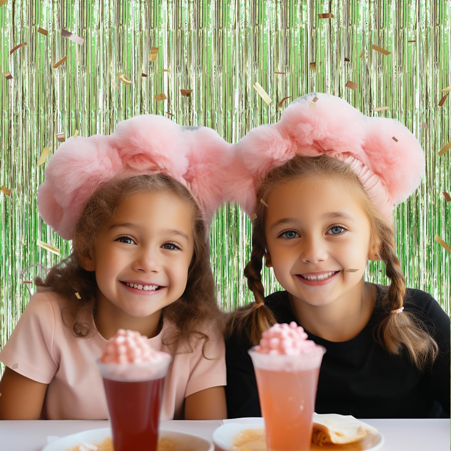 3 Pack Foil Fringe Backdrop - Light Green Shiny Tinsel Curtains for Party Decoration/Photo Booth Props - 3.3x8.2 FT Metallic Foil Backdrop for Birthday, Wedding, Graduation, Christmas