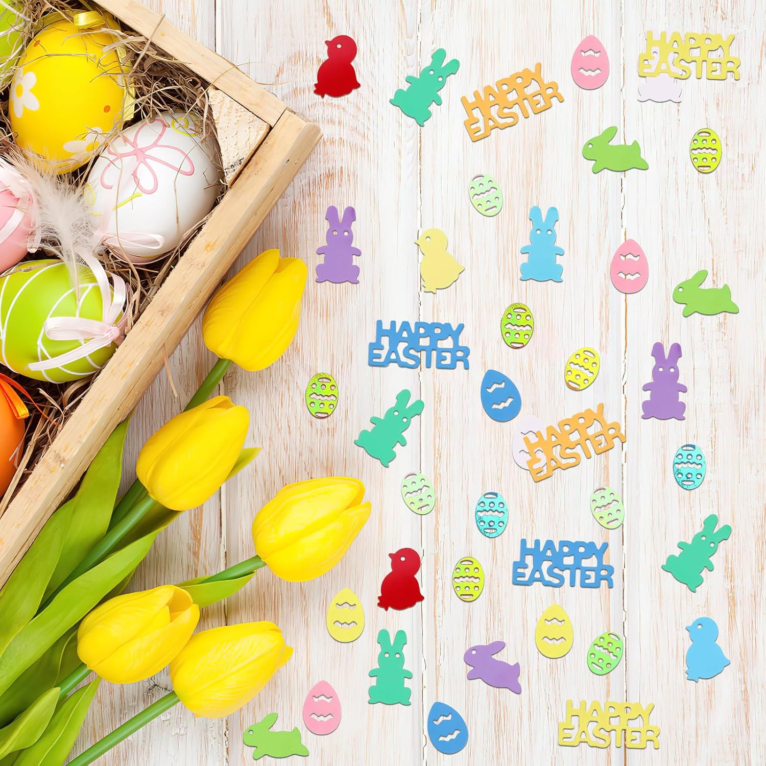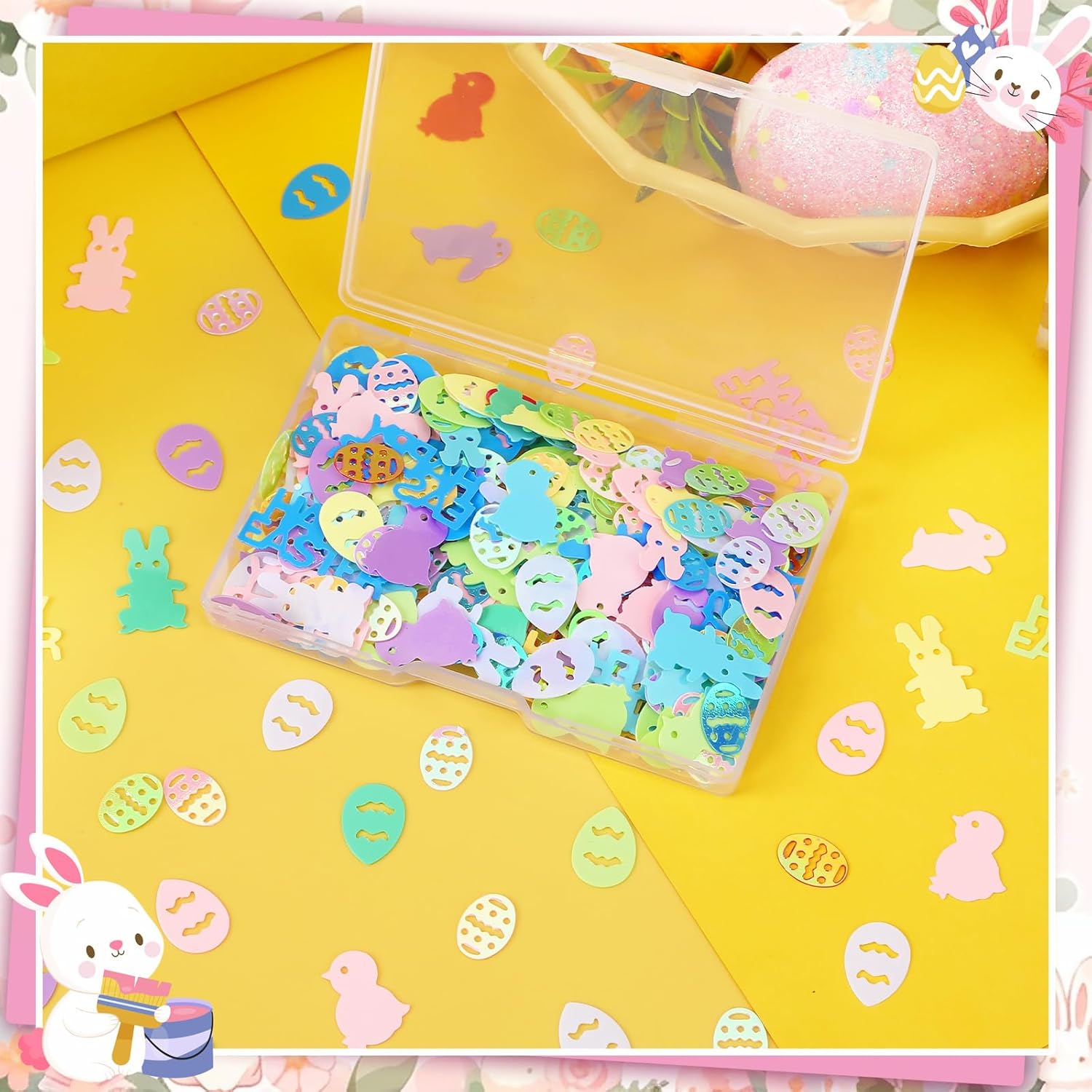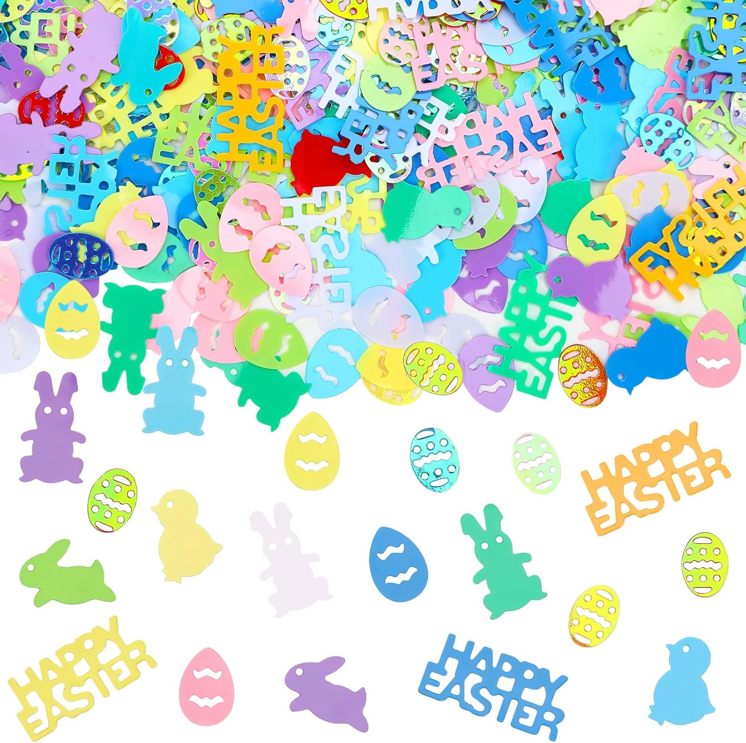 - Easter Confetti Decoration: Our Easter confetti has a rainbow color of red, orange, yellow, green,cyan,blue and purple, which is pleasing and in line with the theme color of Easter. Easter glitter confetti is the ideal desktop confetti decoration for Easter parties. The Easter confetti for table has lovely Easter egg rabbit and chicken design, full of festival atmosphere