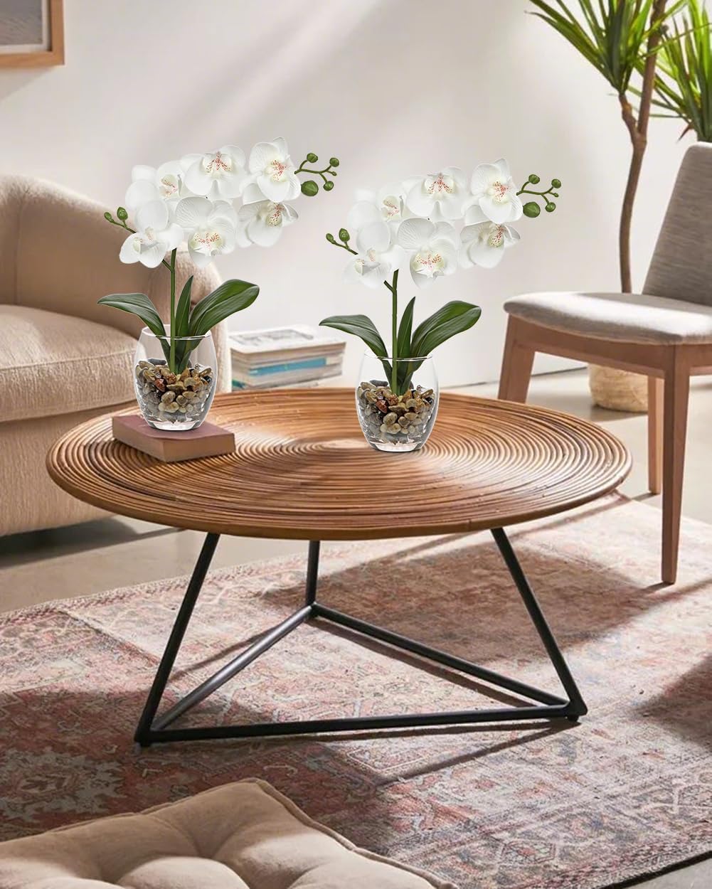- Faux Orchids Plants for Home Decor - These artificial orchid plant blend seamlessly into any interior style. Style them together on a mantel for a bold centerpiece or split them to accent home offices, spa bathrooms, or coffee tables. It is a perfect decoration to your office, shelf, bathroom, living room, bedroom, window, table centerpieces, dining room, cabinet, desk, kitchen, foyer, hotel, etc. Its simple and realistic design will match any decor style perfectly
