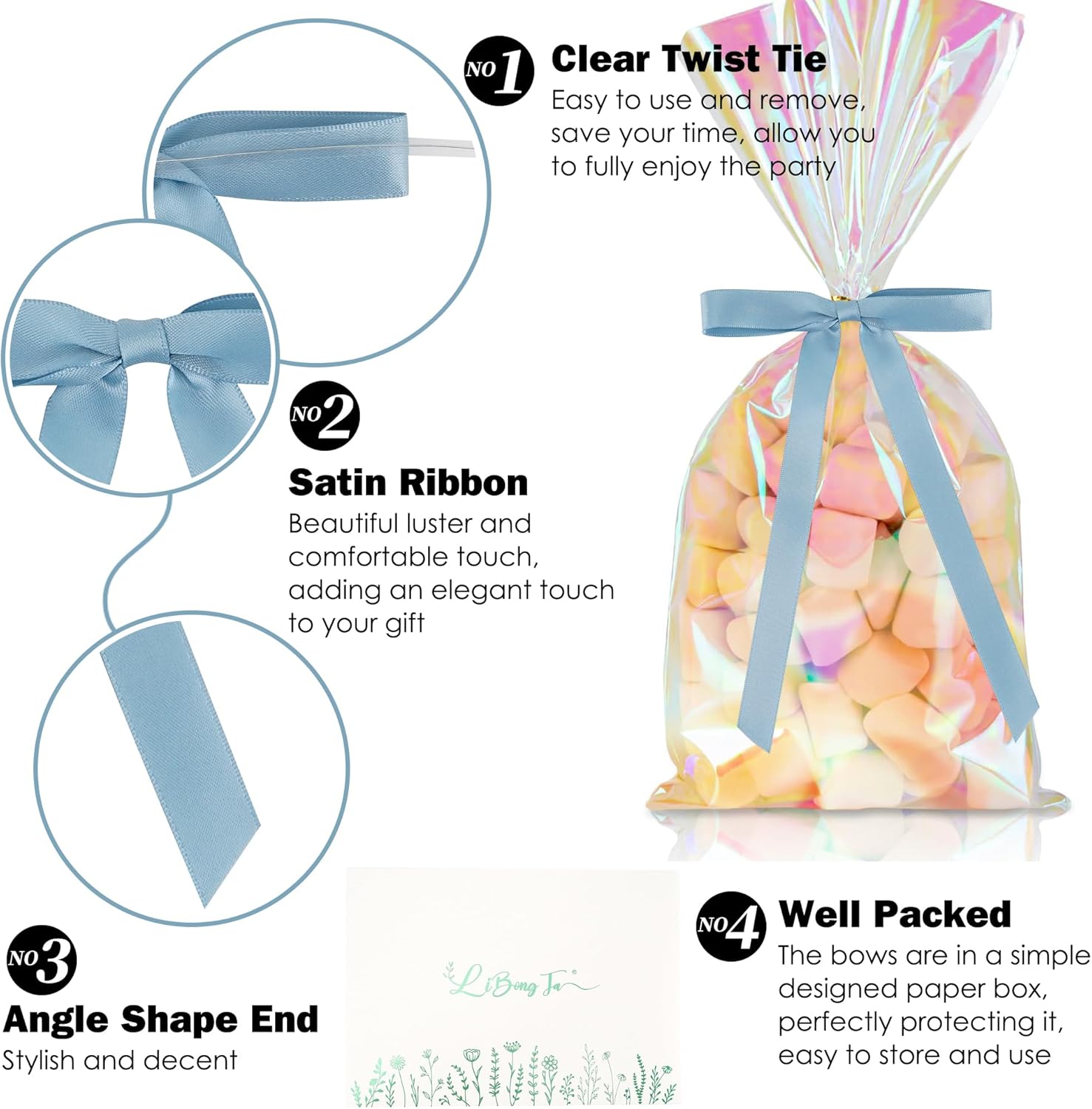 - You will receive 50 satin premade bows packaged in a paper box. Enough for your usage needs. These wrapping bows can hold their shape well and will not fade or deform over time. And these craft bows can ensure that your gift maintains aesthetic appeal for a long time.