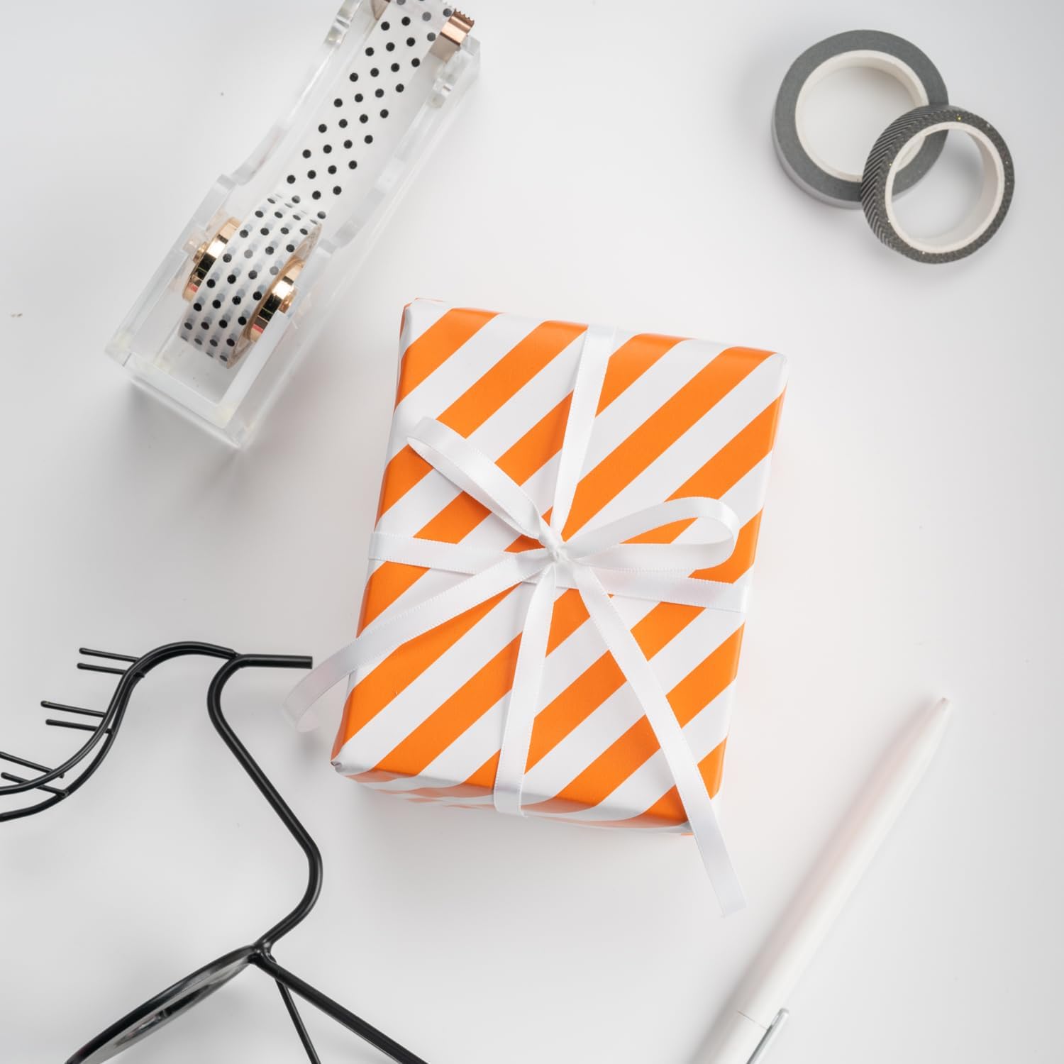 - REVERSIBLE: A solid orange side and a orange/white stripe side, two different classic designs make beautiful and varied gift presentations easy