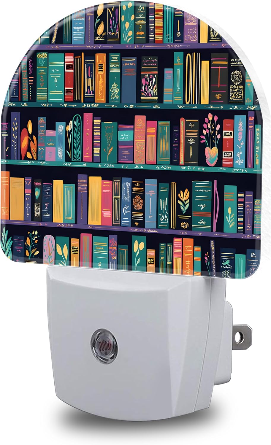 Book Night Light, Bookshelves Night Lights Plug into Wall Dusk to Dawn Sensor Round Nightlight for Women Men Energy Efficient Led Lamp 0.5W for Stairway Hallway Bedroom