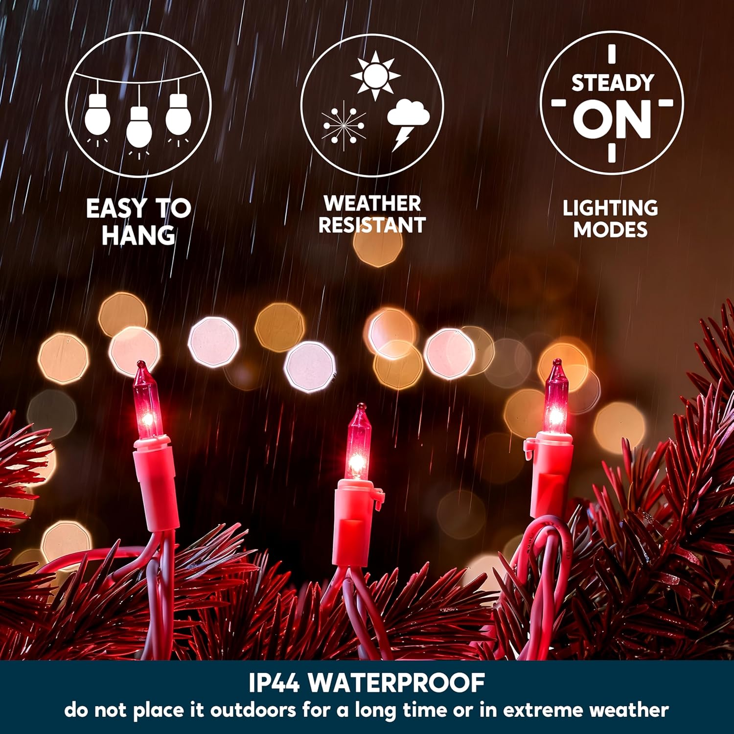 - UL588 Certified & IP44 Waterproof for Ultimate Safety.JOIEDOMI's outdoor string lights are UL588 certified and rated IP44 waterproof, meeting the highest safety standards for decorative lighting. Featuring built-in fuses and premium craftsmanship, these romantic pink string lights withstand rain, snow, and harsh weather conditions, ensuring complete safety for both indoor and outdoor use.