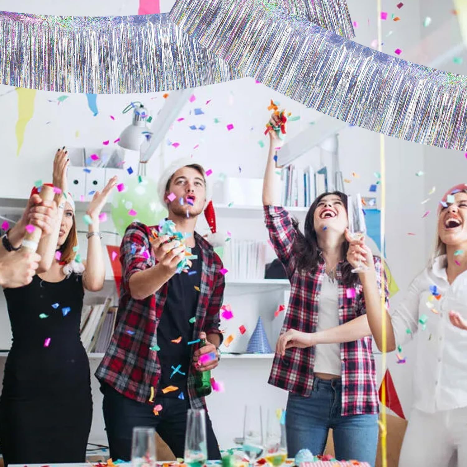 BEISHIDA 3 Packs 30 Feet Metallic Foil Fringe Garland Tinsel Streamers,Laser Silver Wall Hanging Tinsel Fringe Banners for Wedding Birthday Party Decoration Halloween Christmas New Year