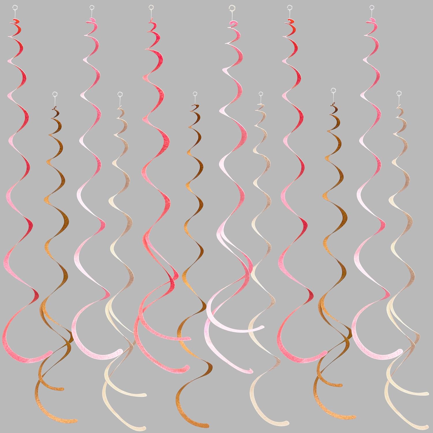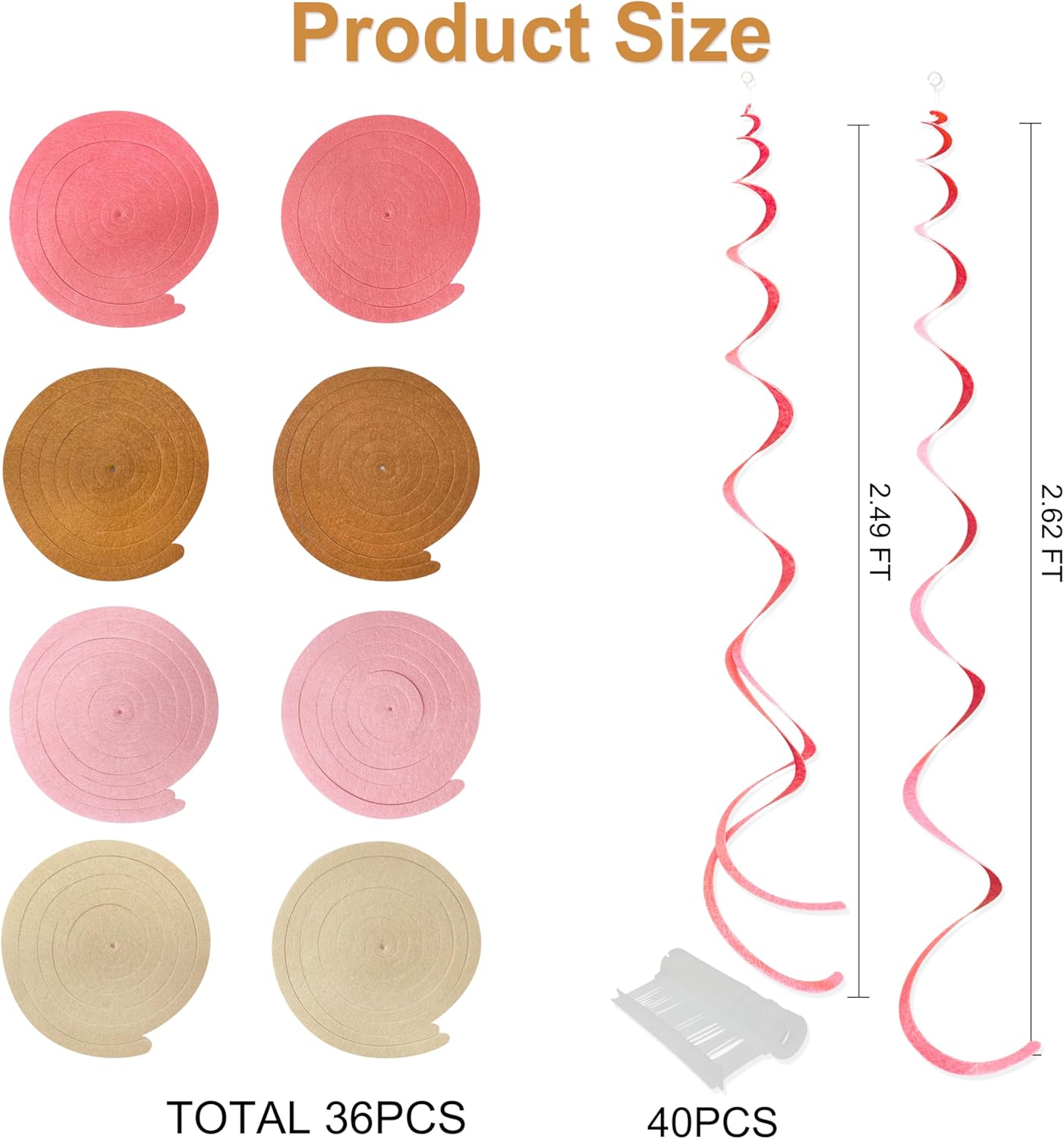 - Package Contains - 36 packs of dusty pink and brown color swirl party streamer,Each swirl can extends to approximately about 2.62 feet long,Meeting daily general needs.Comes with 40 plastic hooks for hanging.