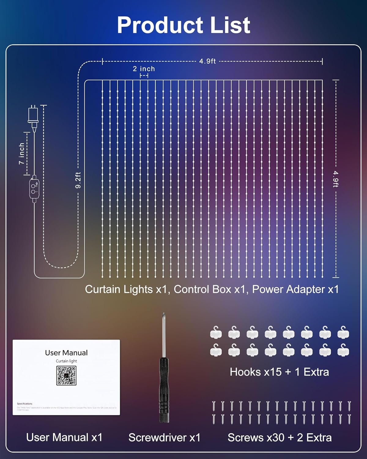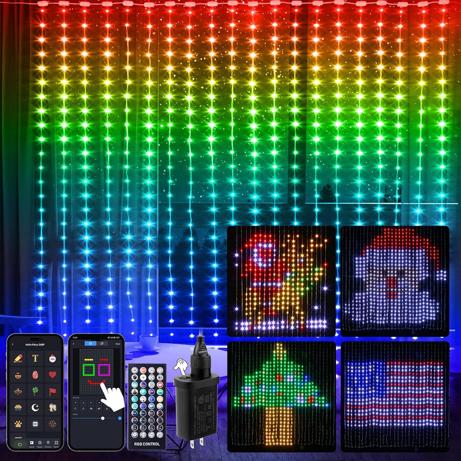 - Creative Smart Window Lights: 4.9 x 4.9 feet 30 drops 900 LED curtain fairy lights for bedroom with remote, simple APP control setup by Bluetooth connection will realize you DIY pixel drawing creation, text input, preset scenes, 16 million colors, sync to the music.