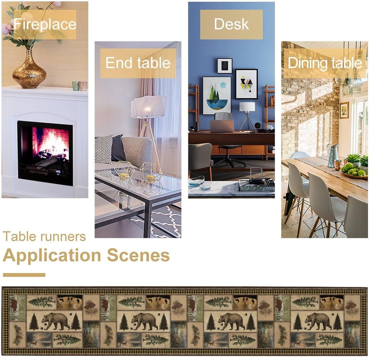 Country Lodge Bear Table Runner, Retro Vintage Bear Cottage Country Style Cabin Farmhouse Dinner Runner for Home Kitchen Dining Table Decoration,13x120 Inch