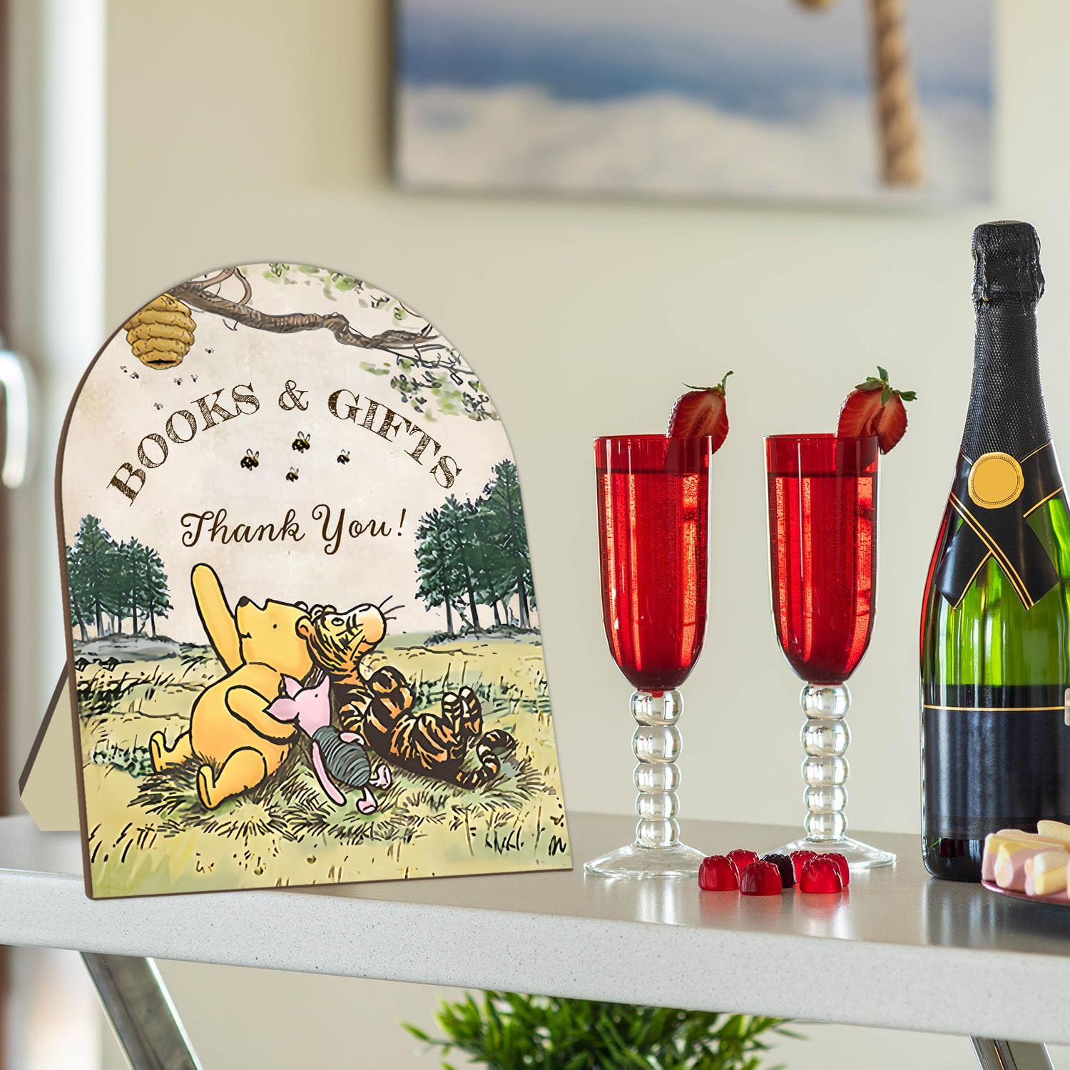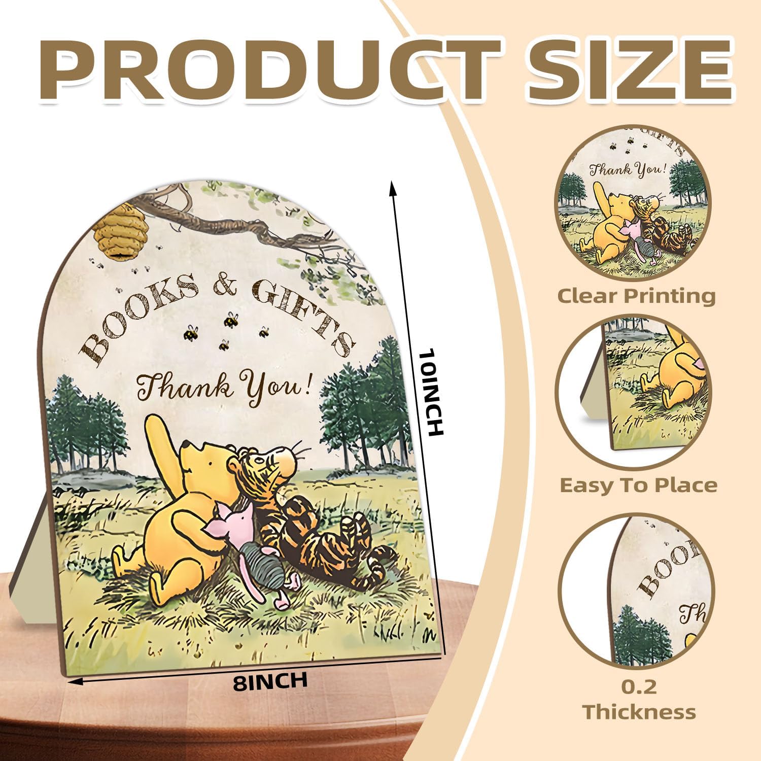 Winnie Books and Gifts Sign, Classic Winnie Thank You Wooden Sign, Bridal Shower Baby Shower Favors, Cute Aniamls Decor Thank You Sign with Stand for Baby Shower Party 8 * 10IN