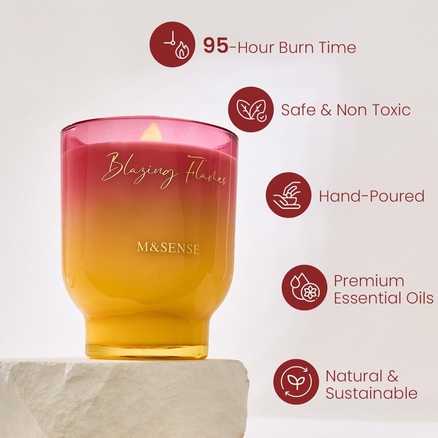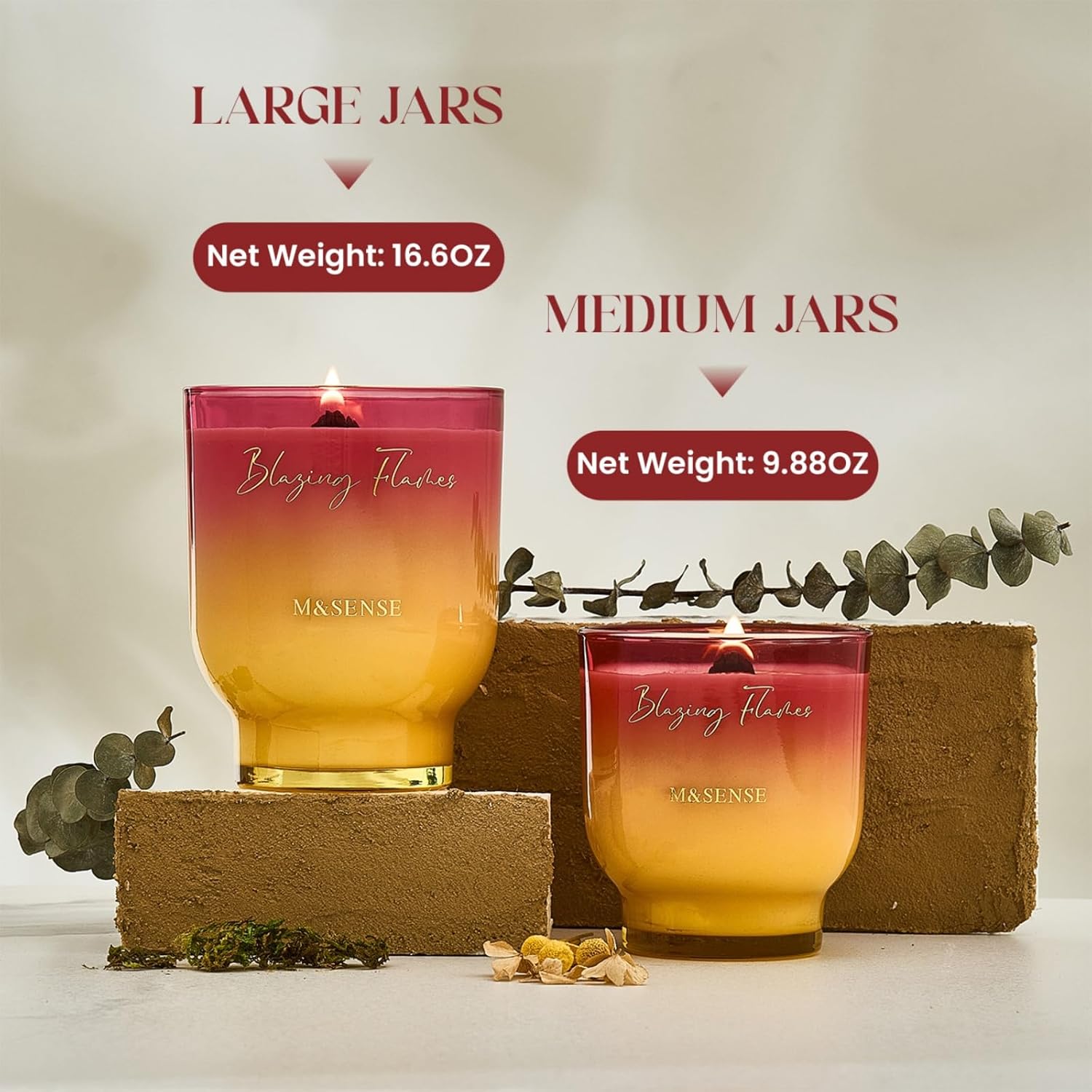 M&SENSE 16.6oz Natural Soy Large Jar Candle with Wooden Wick | Blazing Flames Scent | 95-Hour Burn & Long-Lasting Burn | Housewarming Gift for Men and Women