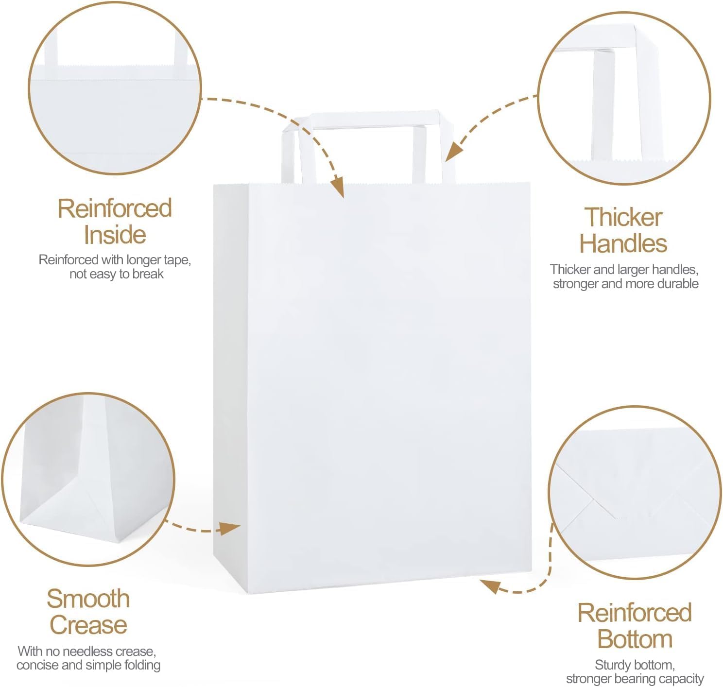 - Multi-purpose Kraft Paper Bags-these white kraft paper bags with handles can be used as paper shopping bags, gift bags, wedding gift bags, retail bags, merchandise bags, party favors for kids goodie bags or food service takeaway bags, etc.