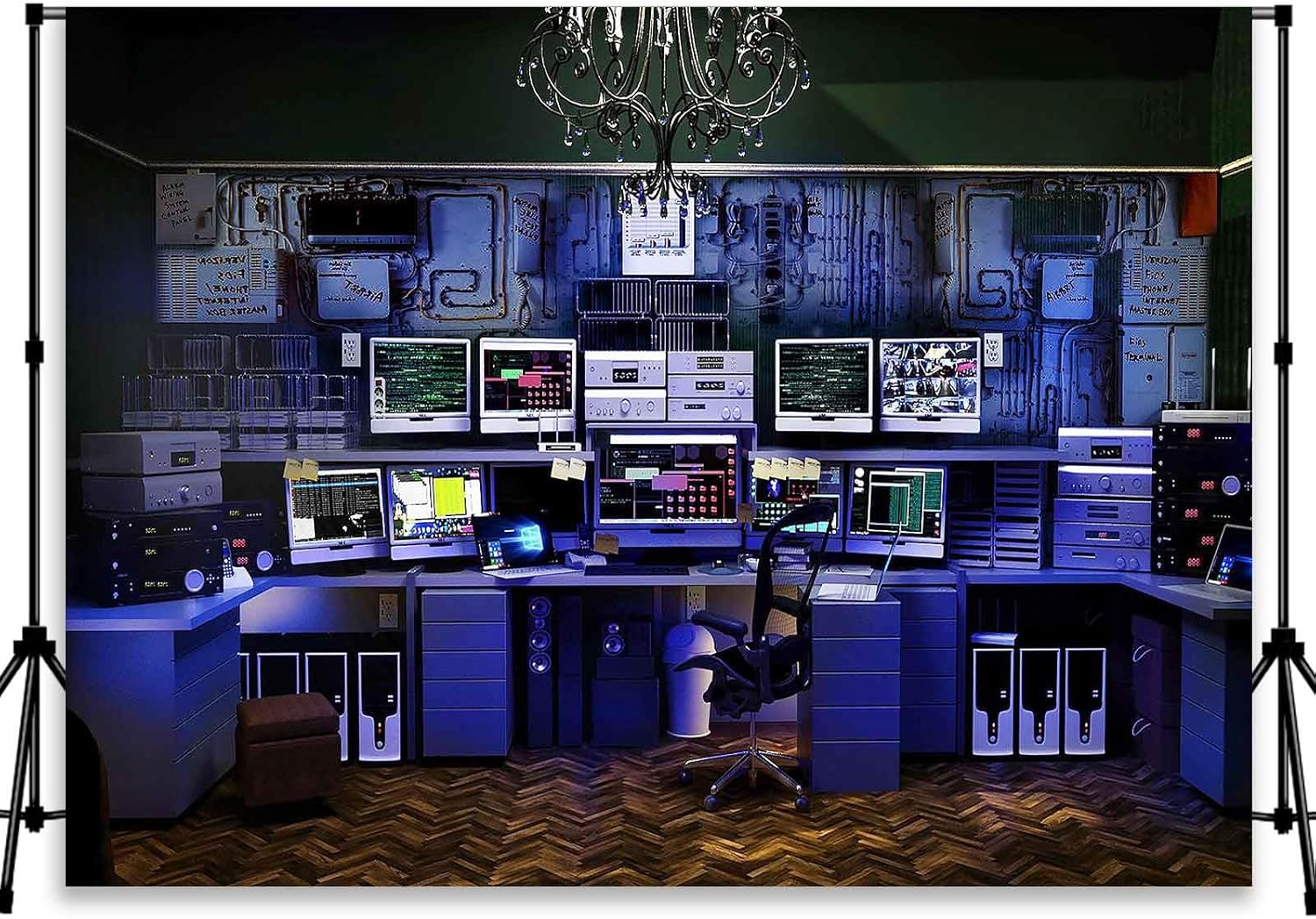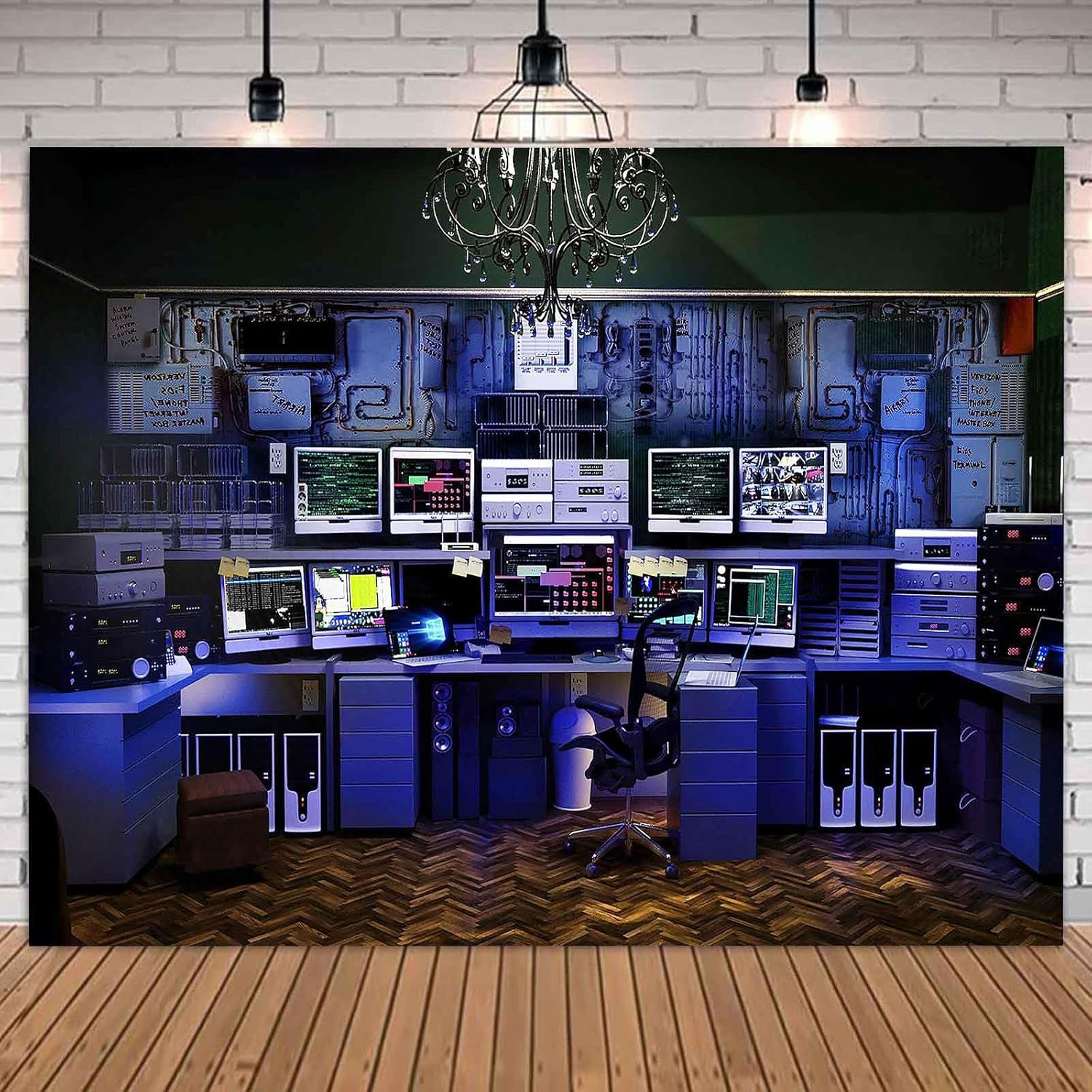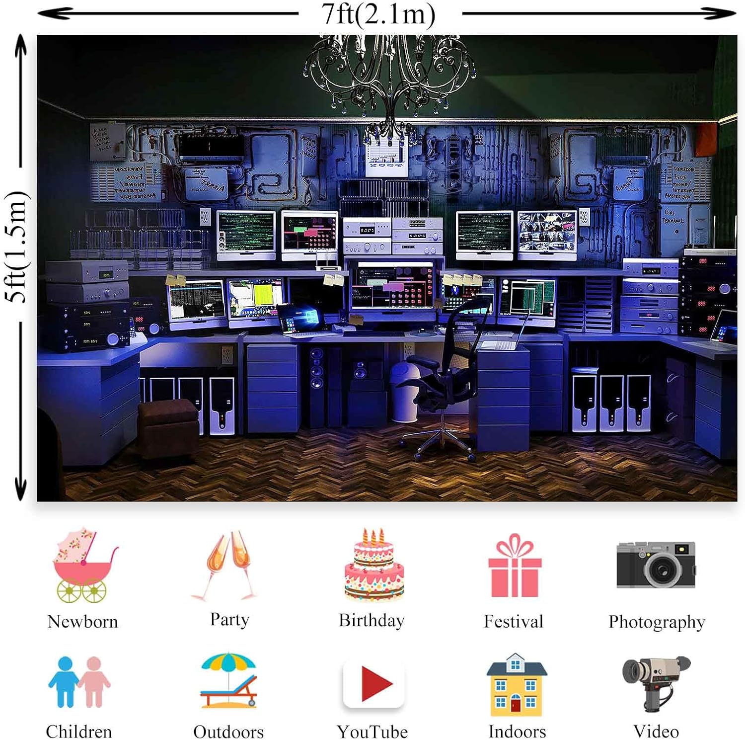 Computer Office Backdrop Retro Computer Photo Backdrop Blue Computers Hacker Room Background for Photography Party Room Decorations Photo Booth Props Supplies 7x5 YUNBDJ557