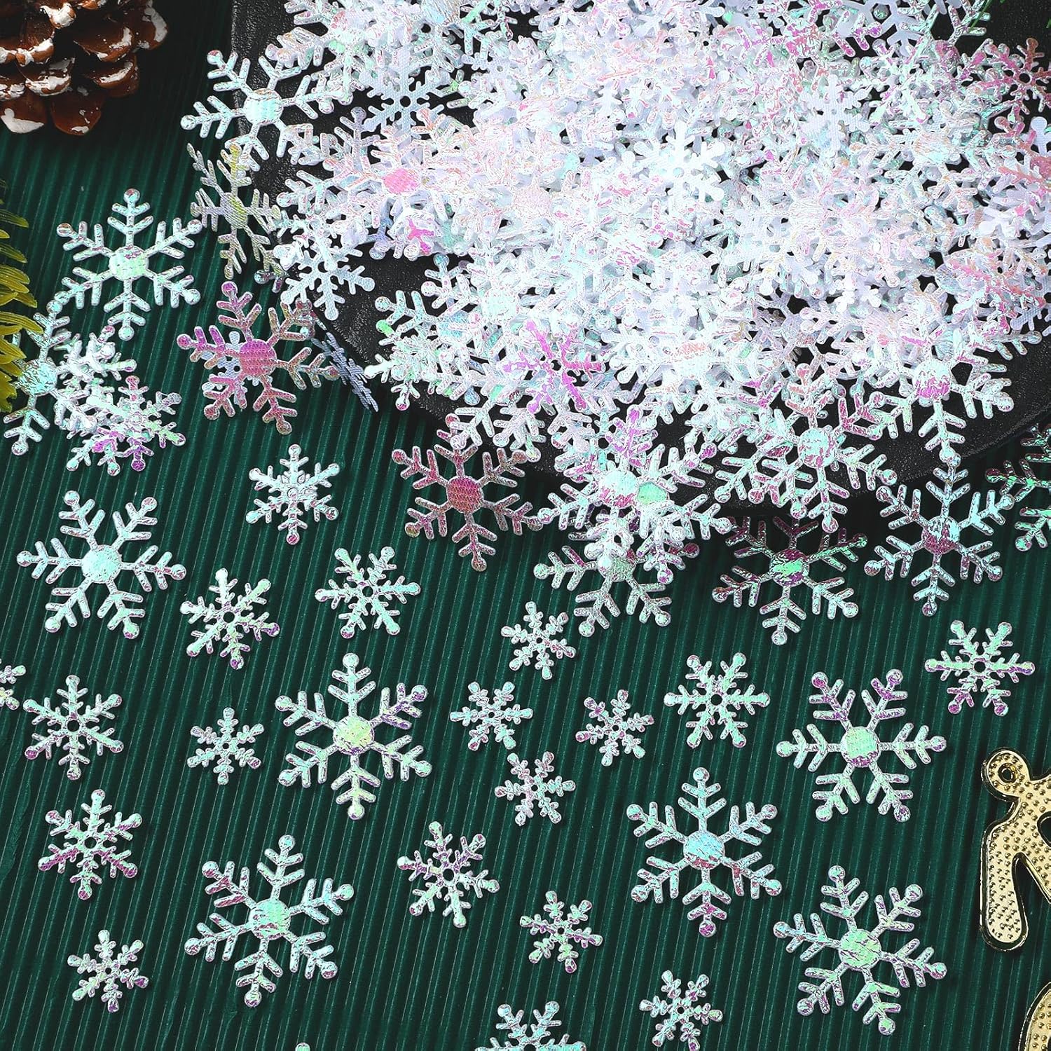 - Package Content: Snowflake confetti have glitter visual effects, which can reflect rainbow-like light and attract people's attention. These beautiful winter confetti can decorate your desk and other accessories to create a good winter party atmosphere