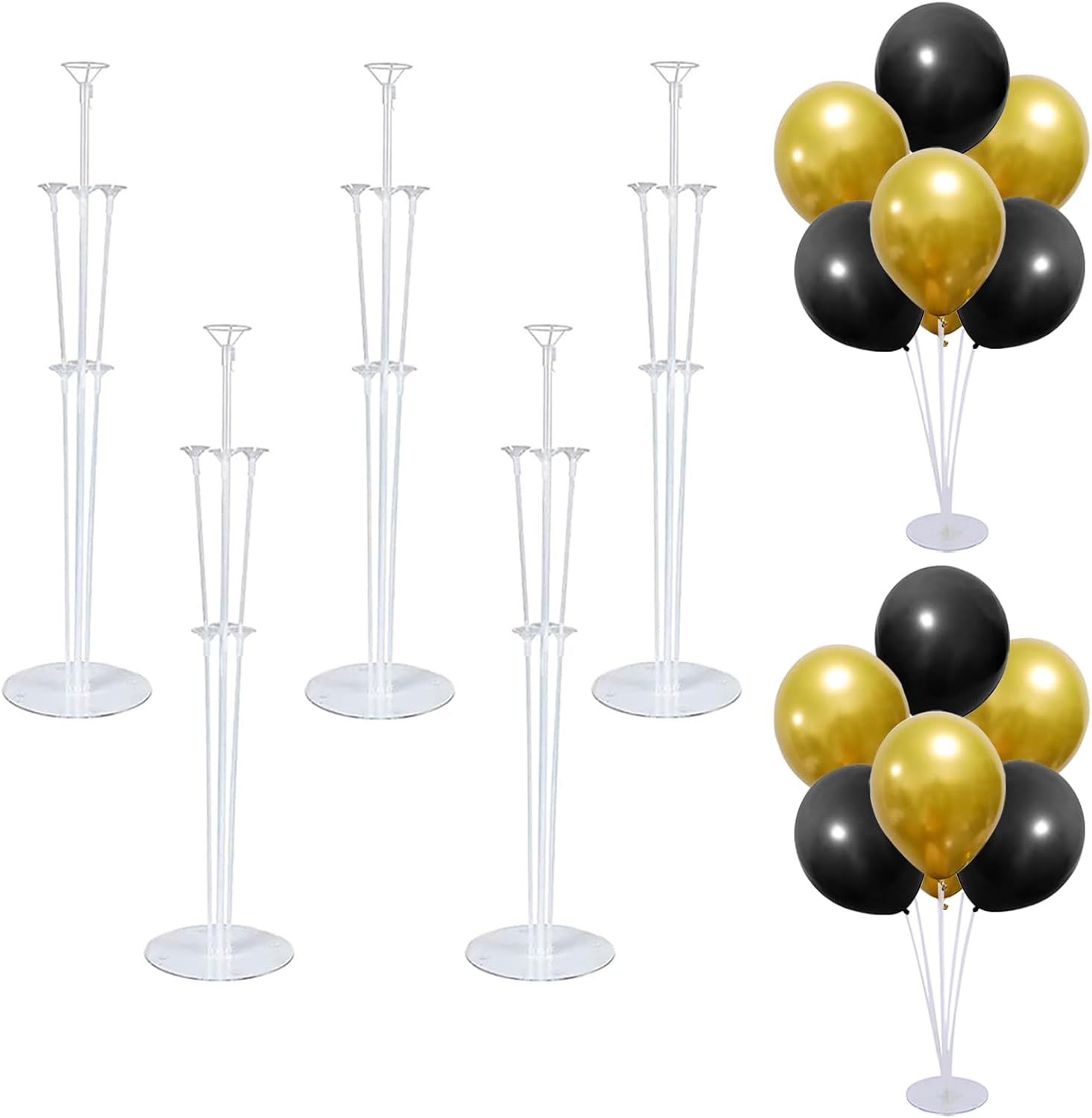 - What Inlcude:The balloon stand kits inlcude 5 sets balloon stand and each balloon stand kit contains 1 base, 7 cups, 4 joints, 8 poles (13.8 inches), and 3 poles (7.9 inches). But balloons are not included.