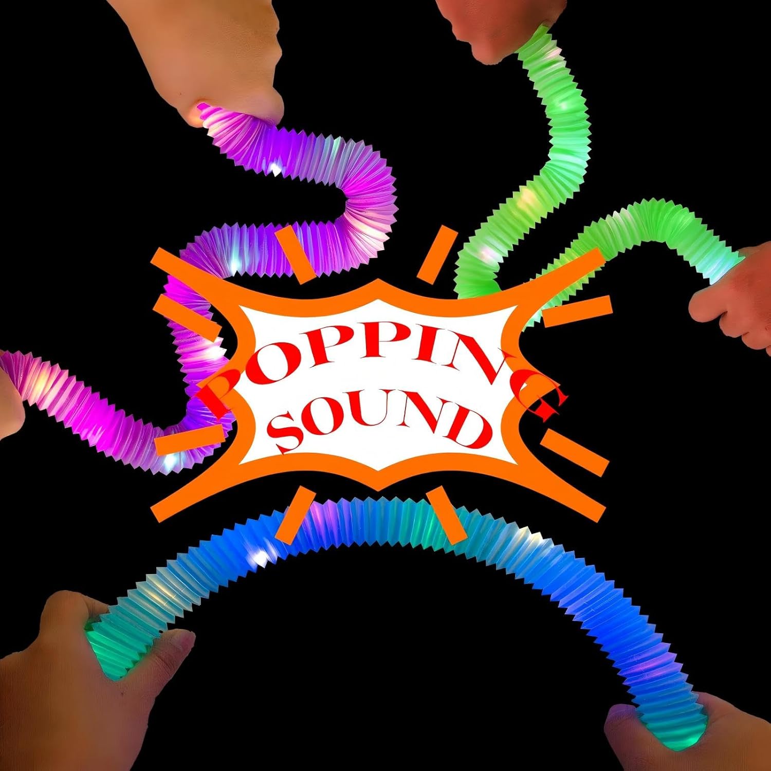 - When you stretch or twist the led pop tubes, it will make a satisfying "pop" sound and special touch, which can help to calm down and relieve anxiety by diverting attention to popping sounds. Nice choice as a playing kids party favors for indoor and outdoor