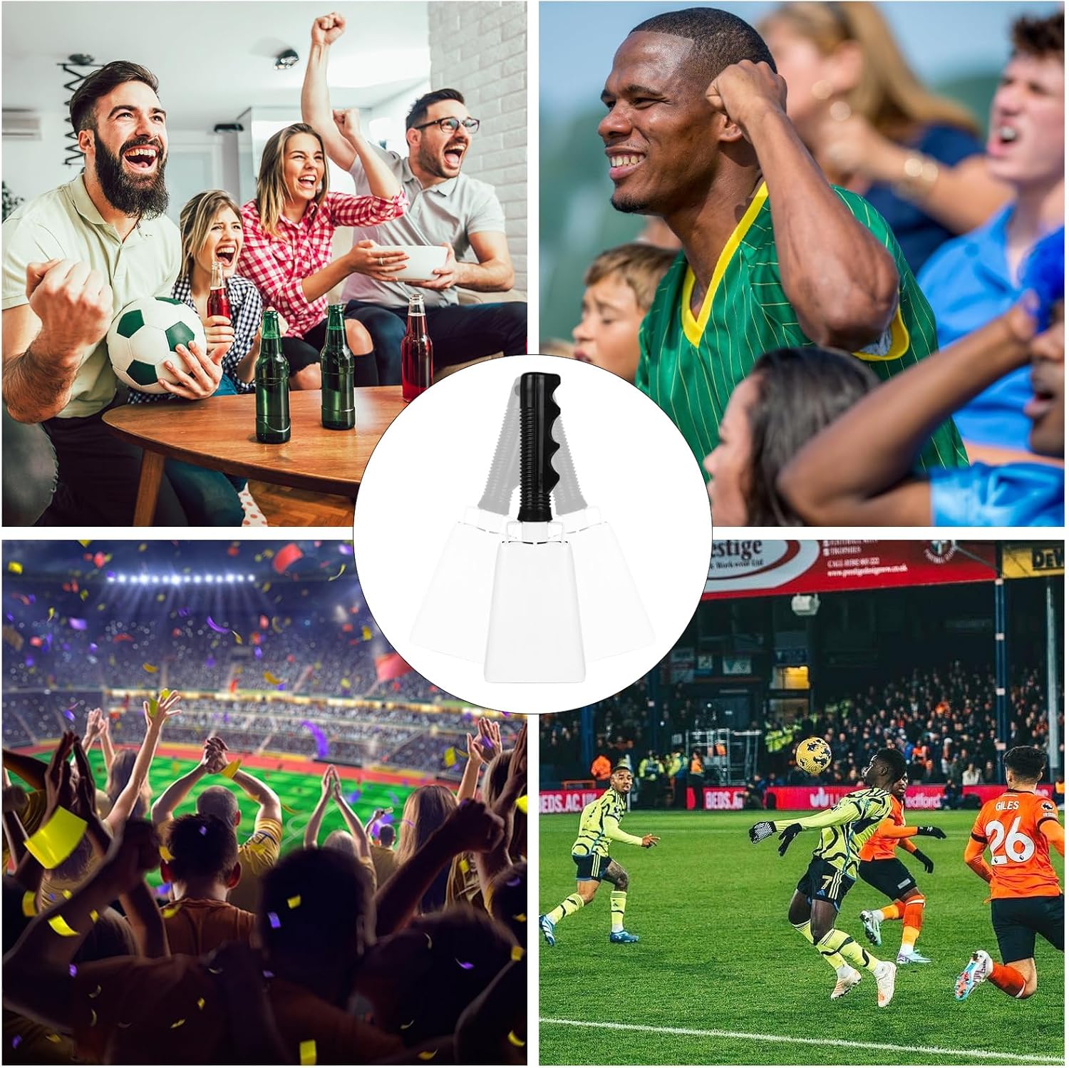 - Noise Makers for Sporting Events: It's the perfect cow bells to shake with excitement and cheer on your favourite team at football, baseball, track and field, basketball matches or any sporting events and raise the ruckus to boost spirits and help you spread the emotion more clearly, can also be used for schools, farms, weddings, concerts, family gatherings and more