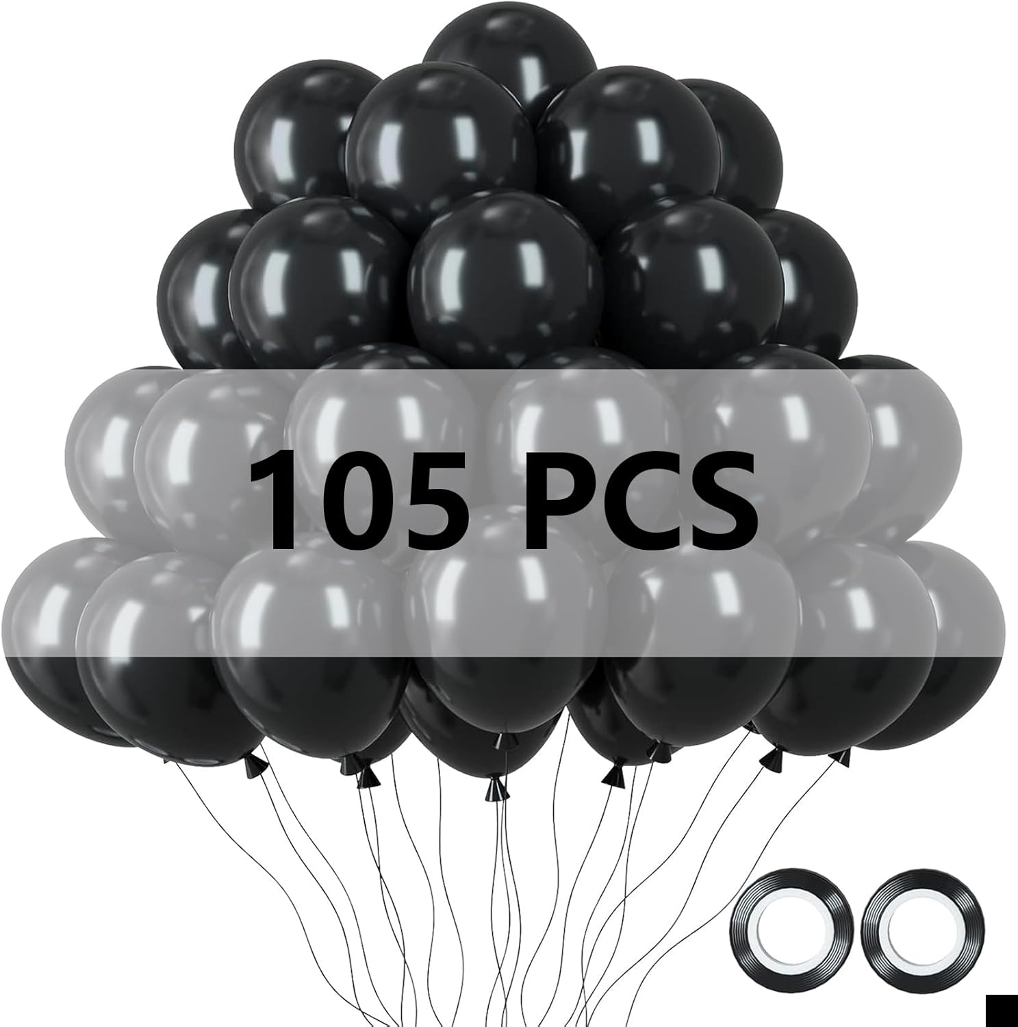- [ PREMIUM QUALITY ] : These 105pcs matte black balloons are made of high quality natural latex material. It is durable and not easy to deflate and break, so both adults and children can use it with confidence.