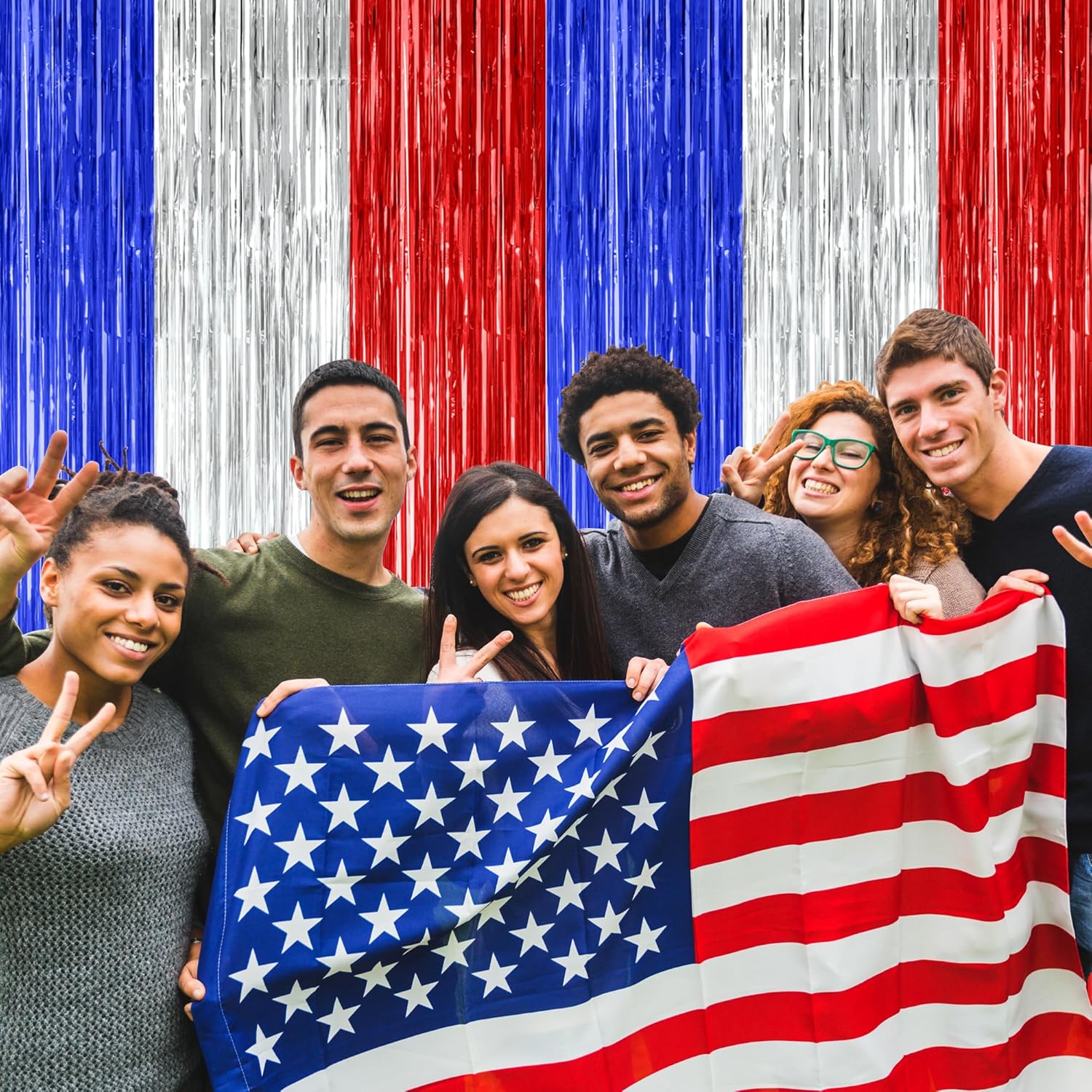 - Multiple Colors: The color combination of blue, silver, and red symbolizes national pride, and the metallic finish gives these foil curtains a more vibrant look for 4th of July photo props.