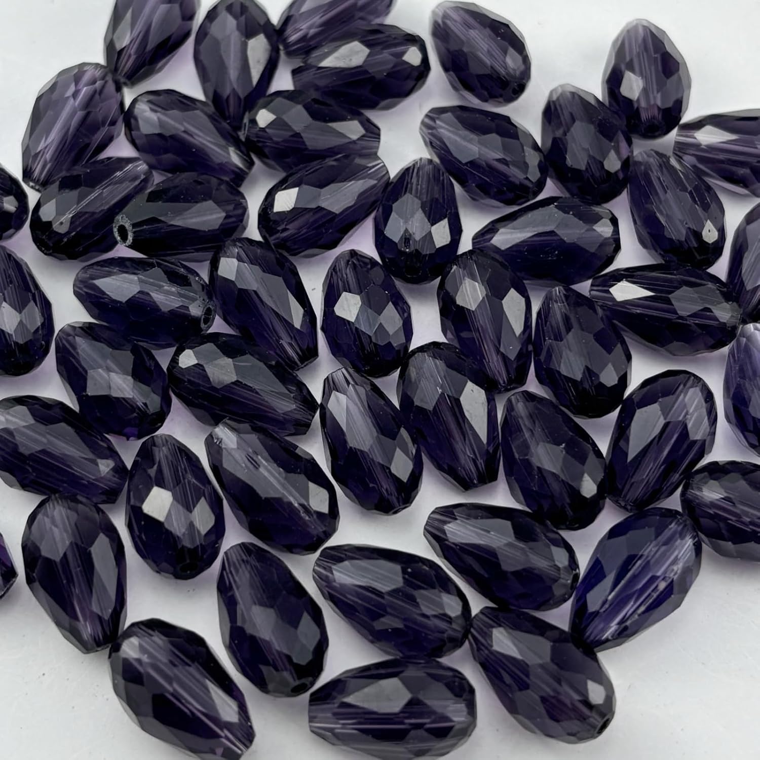 130pcs 6x8mm Teardrop Crystal Glass Beads for Jewelry Making, Faceted Vertical Hole Teardrop Glass Spacer Beads for Wind Chimes Bracelet Earring Necklace DIY Craft(Violet)
