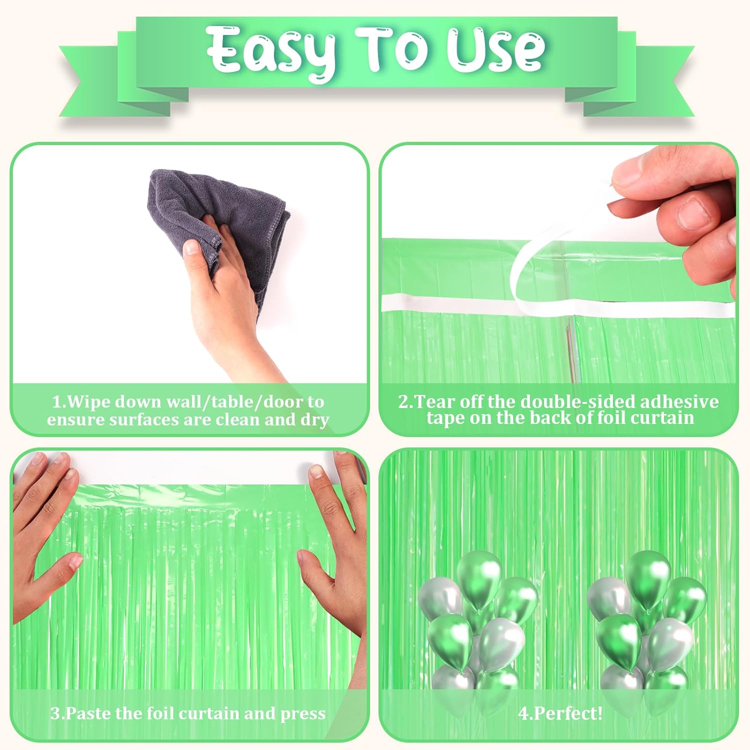 3 Pack 3.3 x 8.2 ft Pastel Green Foil Fringe Backdrop Curtains, Tinsel Streamers Party Decorations, Fringe Backdrop
