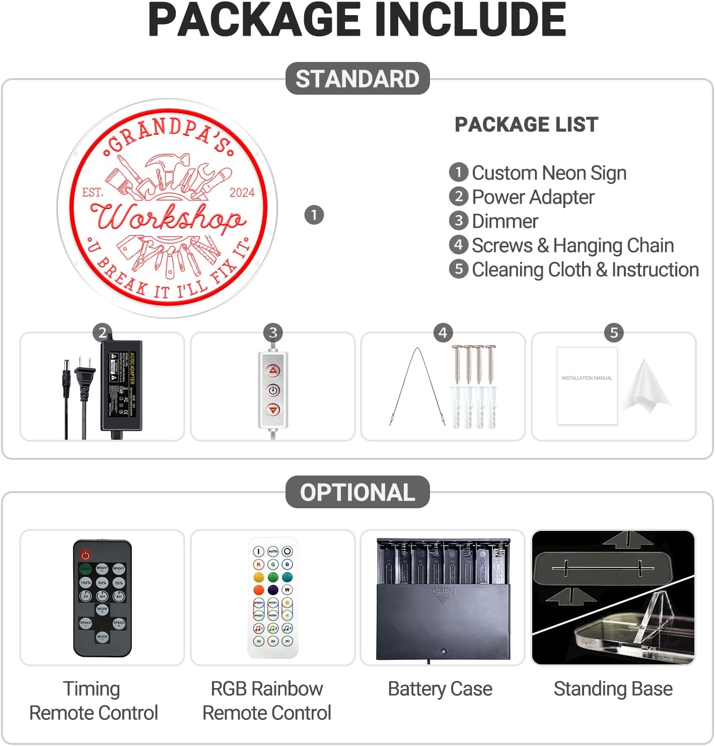 - 🎁【Unique Gifts】The cool neon signs are exquisite and special gifts for men, husband, dad or friends on birthdays, weddings, anniversaries, Christmas or other special occasions. It emits bright and warm glows and will stand out brightly in the darkness of night, perfect for garage man cave decorations.