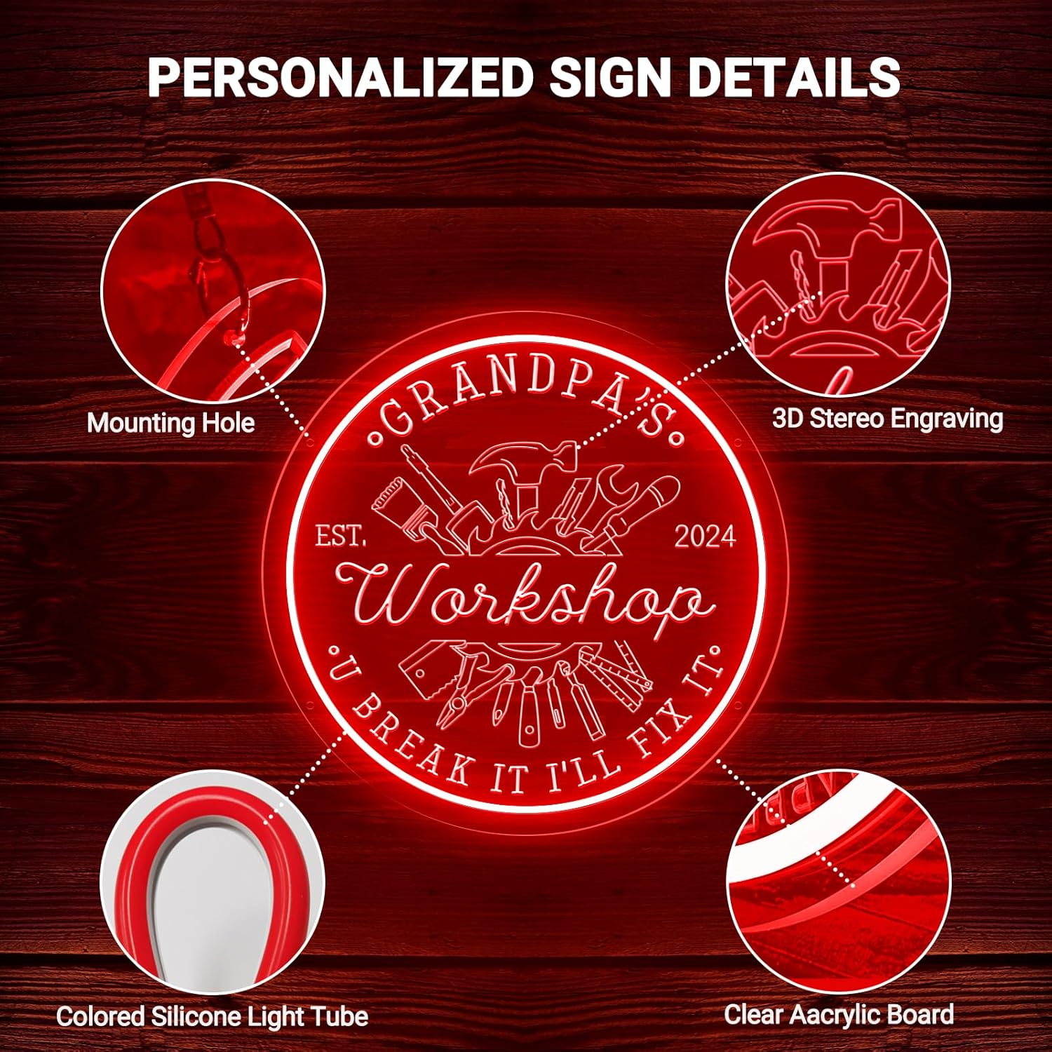 - 🌟【3D Engraving Process】Our personalized garage neon signs feature a upgraded 3D engraving process, where custom text and graphics are etched onto a clear acrylic board. The stereo carvings are colorless and illuminated by vibrant colored LED neon strips that bring out the best 3D lighting, adding depth and brightness to turn any wall into a personalized artwork.