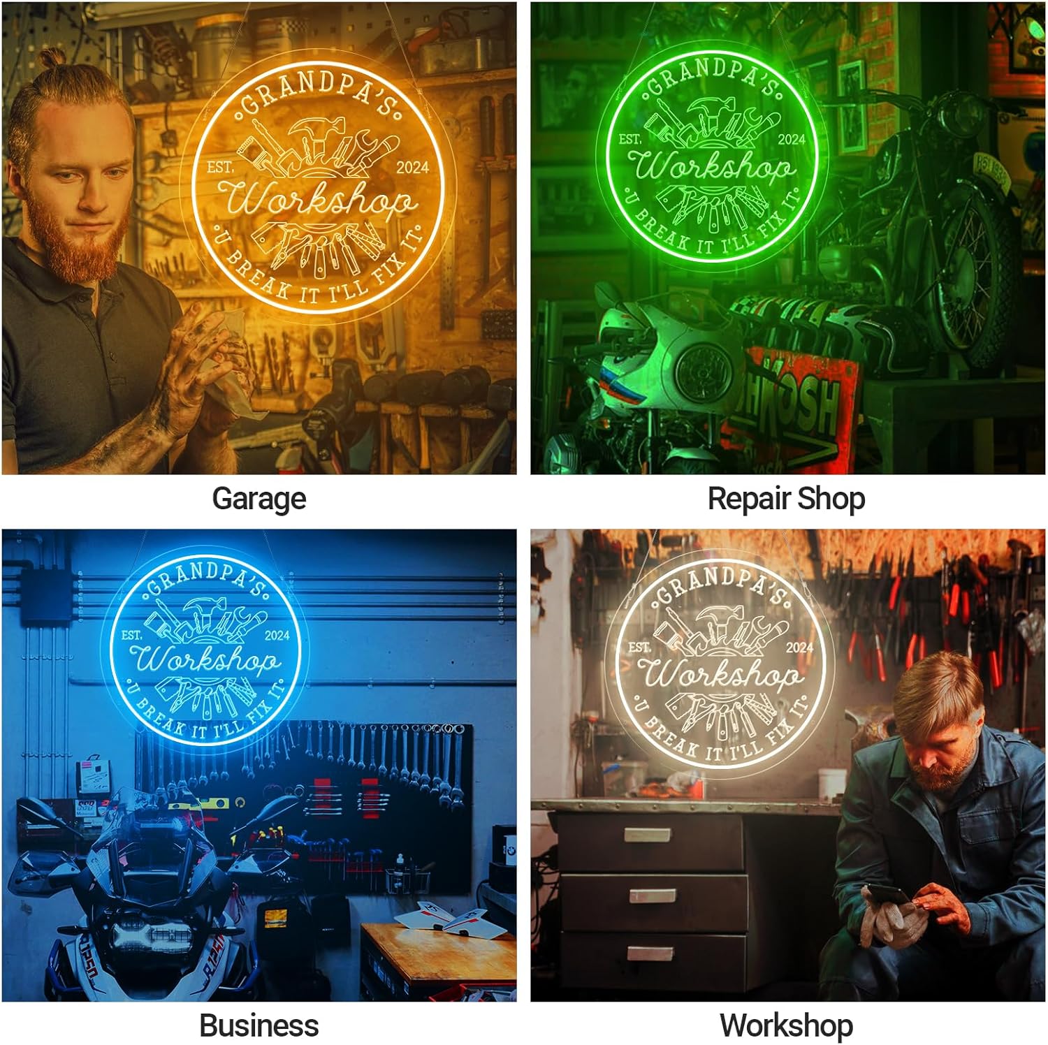 - 🎨【Personalized Garage Signs】The personalized garage neon sign create a romantic, warm and stylish atmosphere for your man cave and garage decor. Choose your favorite size and color, enter your custom text and so on and tailored to your decoration theme to create a truly belong you one-of-a-kind led sign. Click the "Customize Now" button to start!