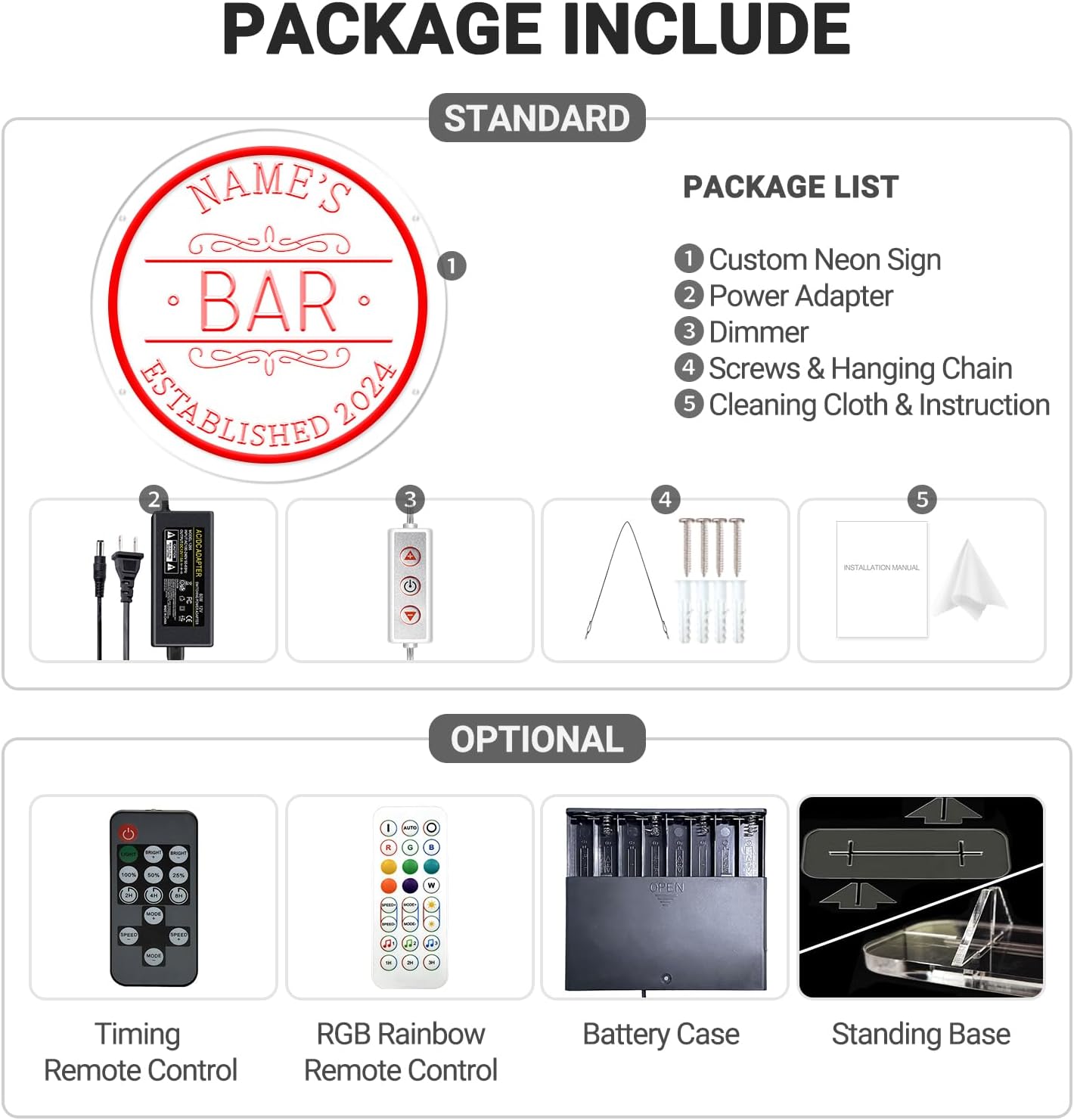 - 【Personalized Bar Signs】The personalized bar neon sign create a romantic, warm and stylish atmosphere for your home bar decor. Choose your favorite size and color, enter your custom text and so on and tailored to your decoration theme to create a truly belong you one-of-a-kind led sign. Click the "Customize Now" button to start!