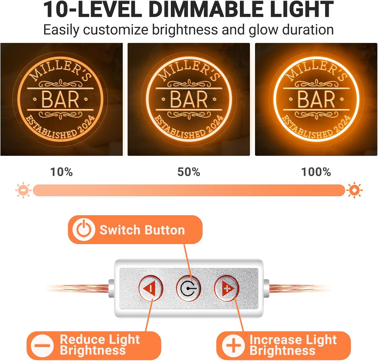 - 【3D Engraving Process】Our personalized bar neon signs feature a upgraded 3D engraving process, where custom text and graphics are etched onto a clear acrylic board. The stereo carvings are colorless and illuminated by vibrant colored LED neon strips that bring out the best 3D lighting, adding depth and brightness to turn any wall into a personalized artwork.